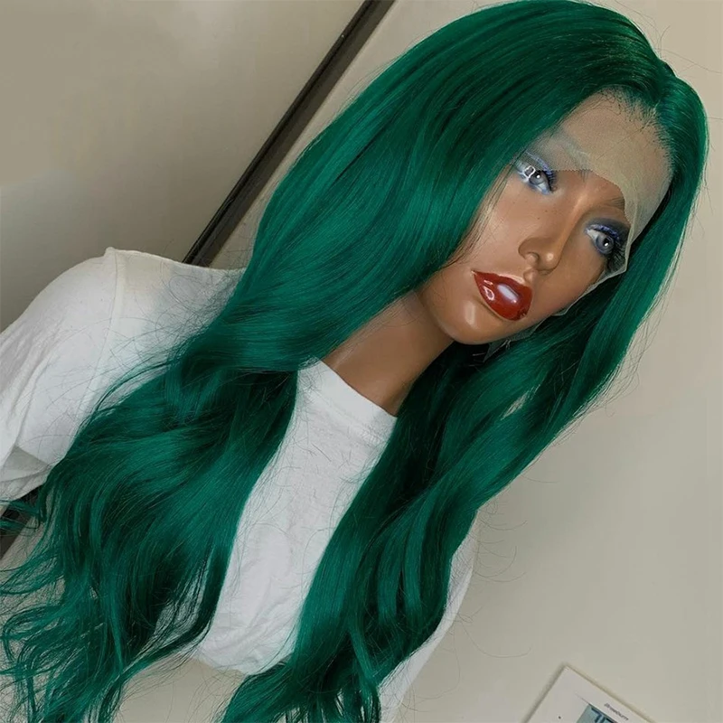 Зеленые волнистые передние парики из человеческих волос, предварительно выщипанные парики 13*4 на сетке спереди, с детскими волосами, бразильские волнистые парики без повреждений на сетке для женщин