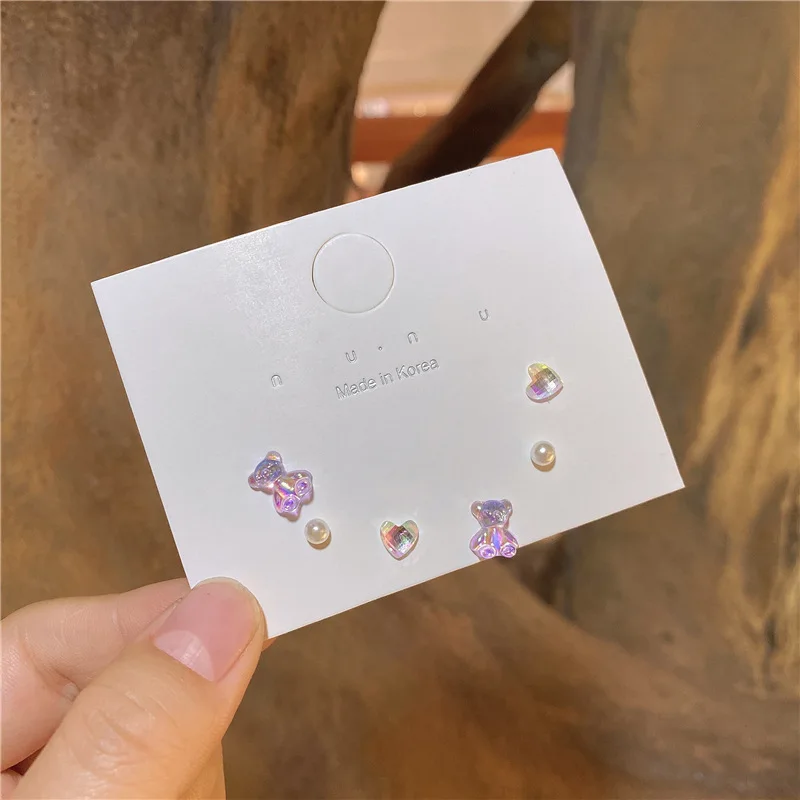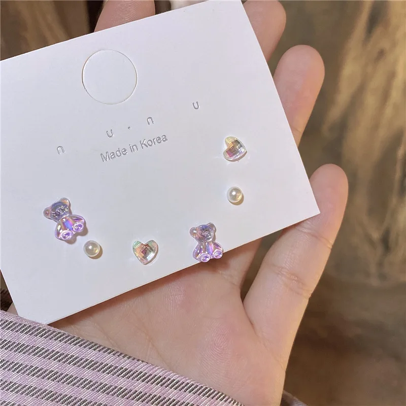 S925 серьги мечтательный медведь "любовь" набор комбинация 2021 новые модные милые Простые Романтические подходящие ко всему серьги