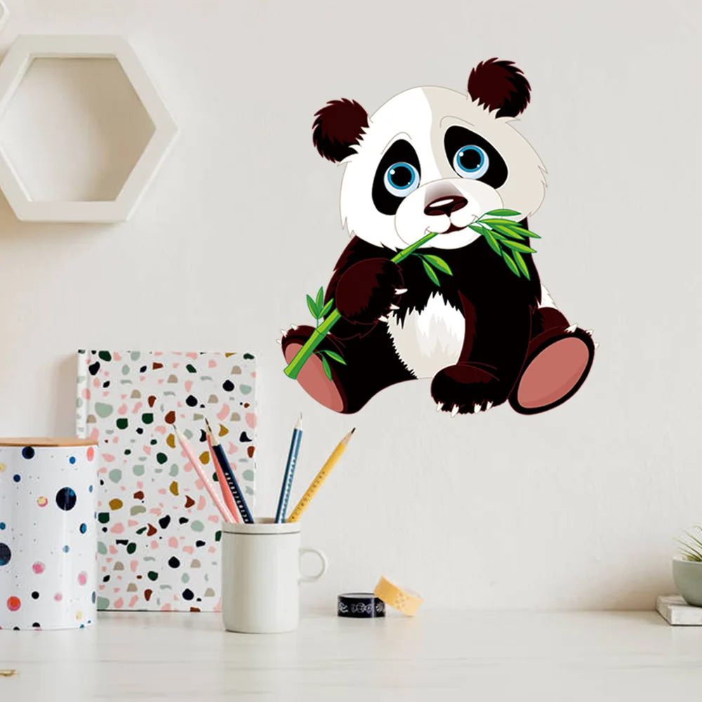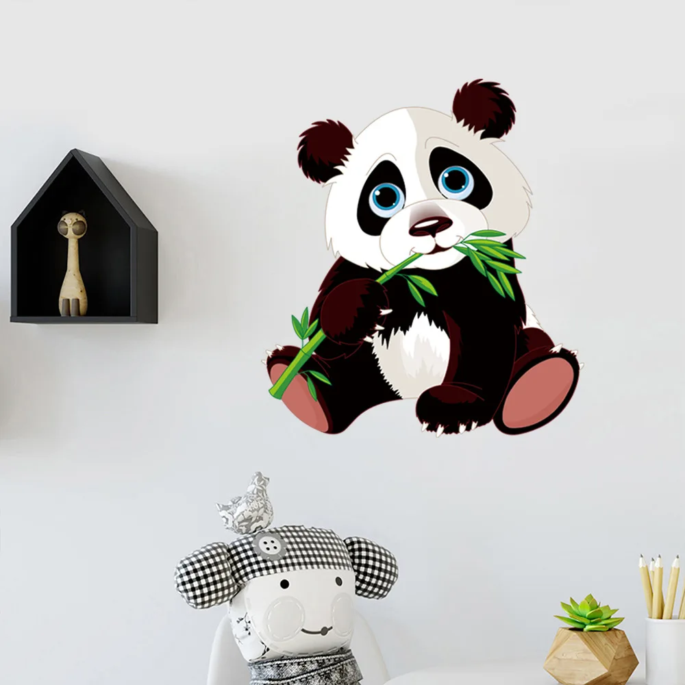 Наклейки на стену в виде милой панды из бамбука, украшение на стену детской комнаты, Мультяшные животные, креативные наклейки