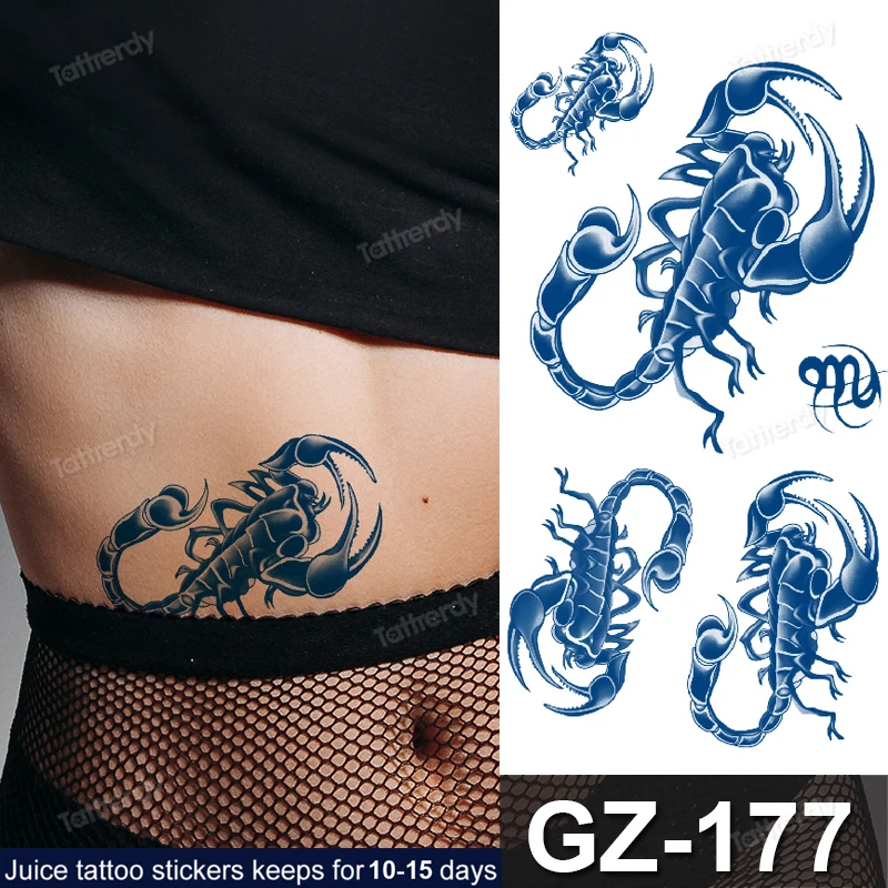 Водонепроницаемый Временные татуировки в виде скорпиона Орел письмо натуральный органический фруктовый сок татуировки Поддельные долговечный наклейки на живот тела
