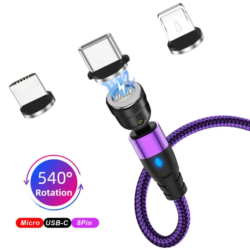 Магнитный кабель USB Type-C, Micro USB, для IPhone, Xiaomi, Samsung, Huawei, вращающийся на 540 градусов