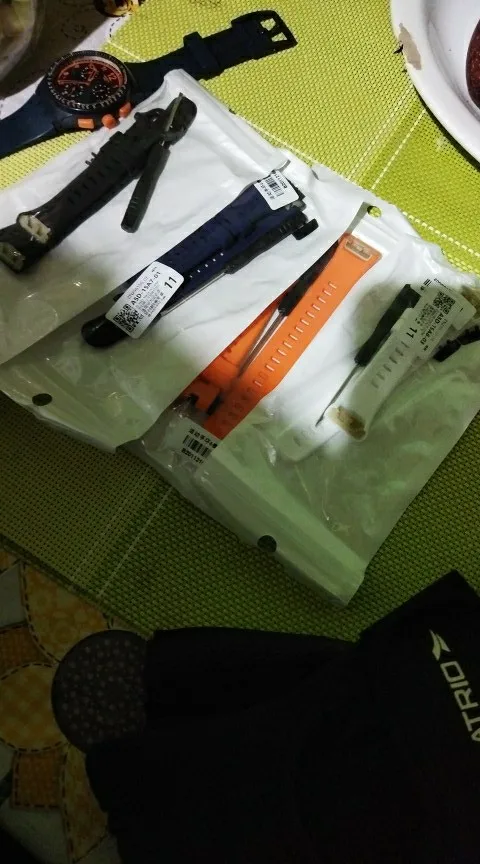 Отправили заказ быстро, доставили за 3 недели. Товар отслеживался. Ремешки выглядят хорошо, немного жёстче, чем оригинальные. Фиксаторы у всех ремешков чёрные. На светло зелёном браслете имеется брак окраски. В одном наборе сломана отвёртка, но это не критично.