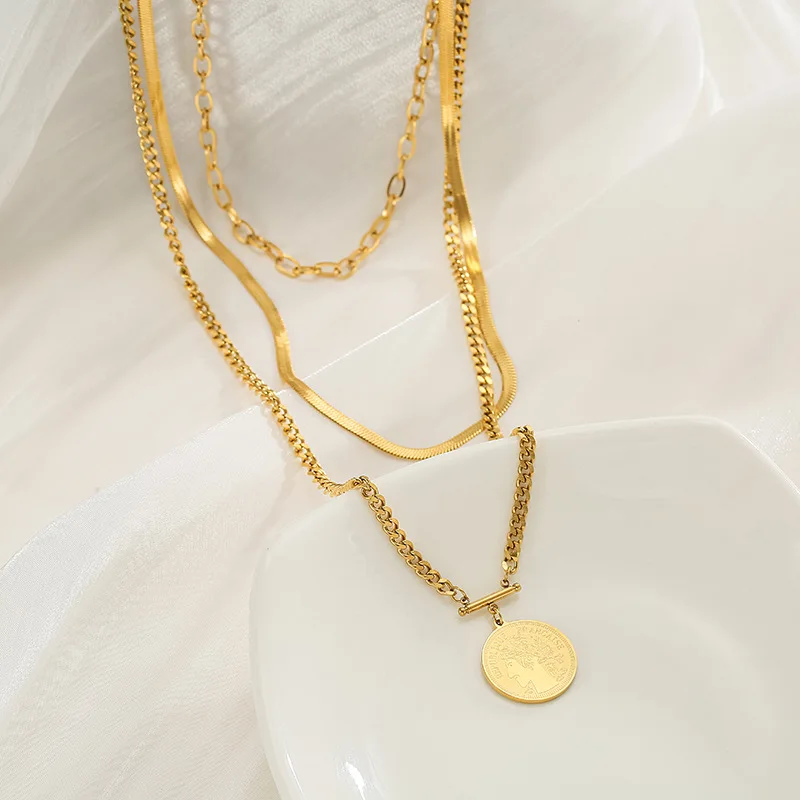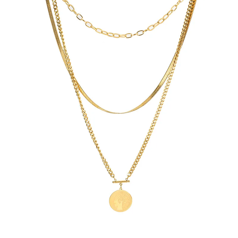 XIYANIKE 316L из нержавеющей стали 3 Слои золото Цвет Круглый ожерелья Модные Простые цепочка колье-чокер 2021 Новинка подвески для ожерелье из серебра
