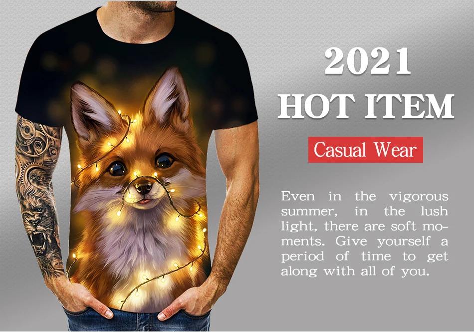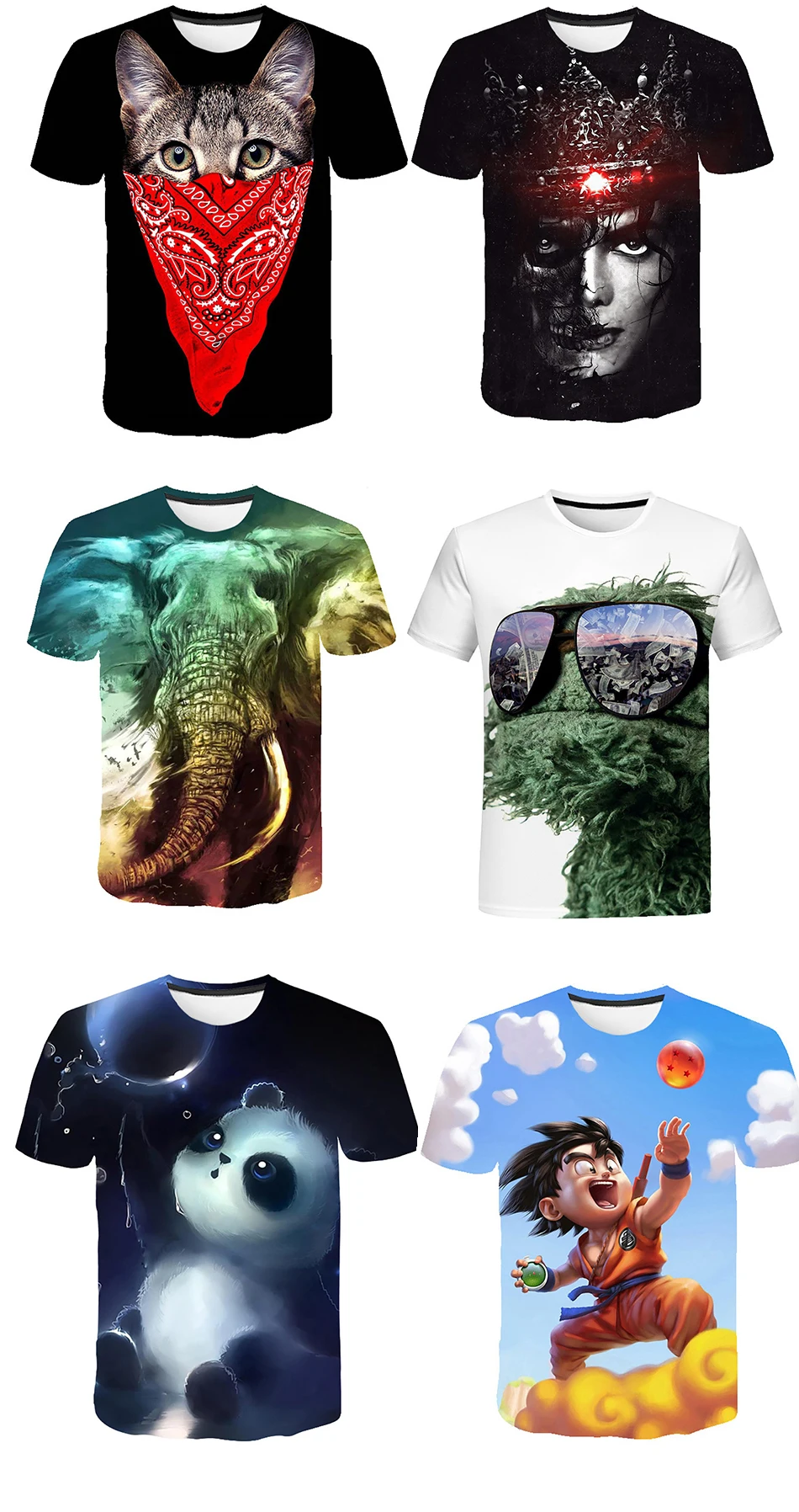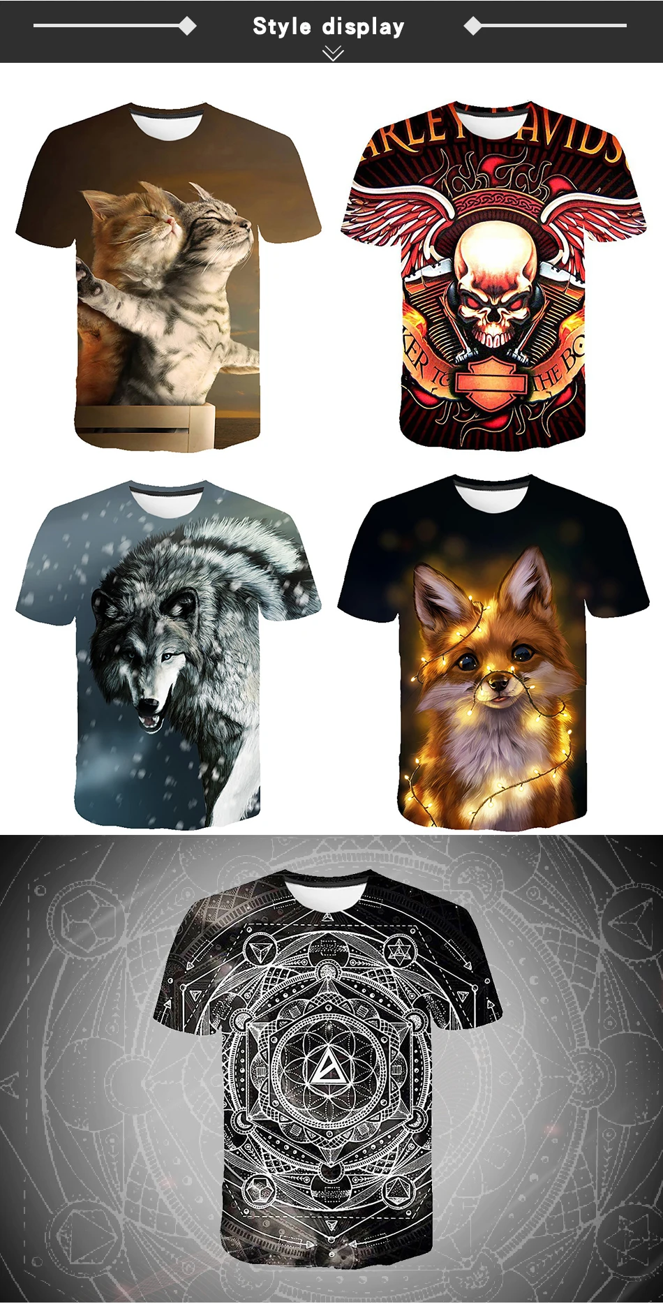 Футболки с животными, Стильная летняя Мужскаяженская футболка с 3D-...