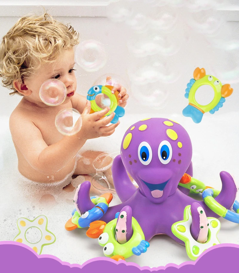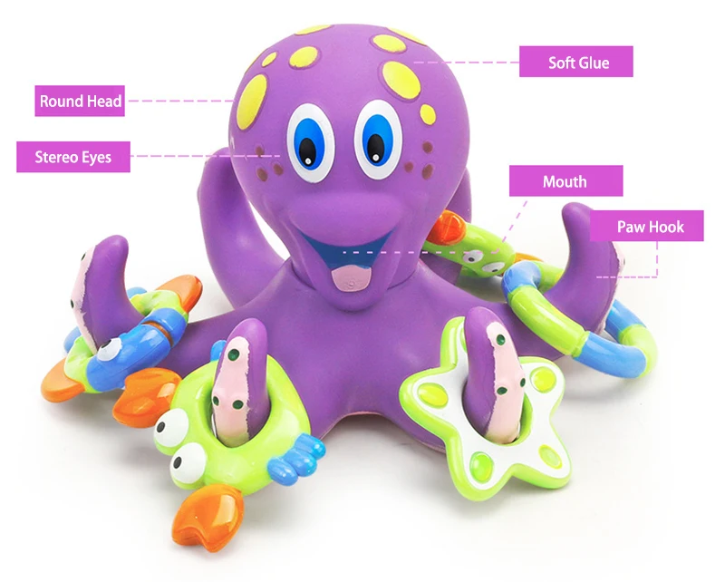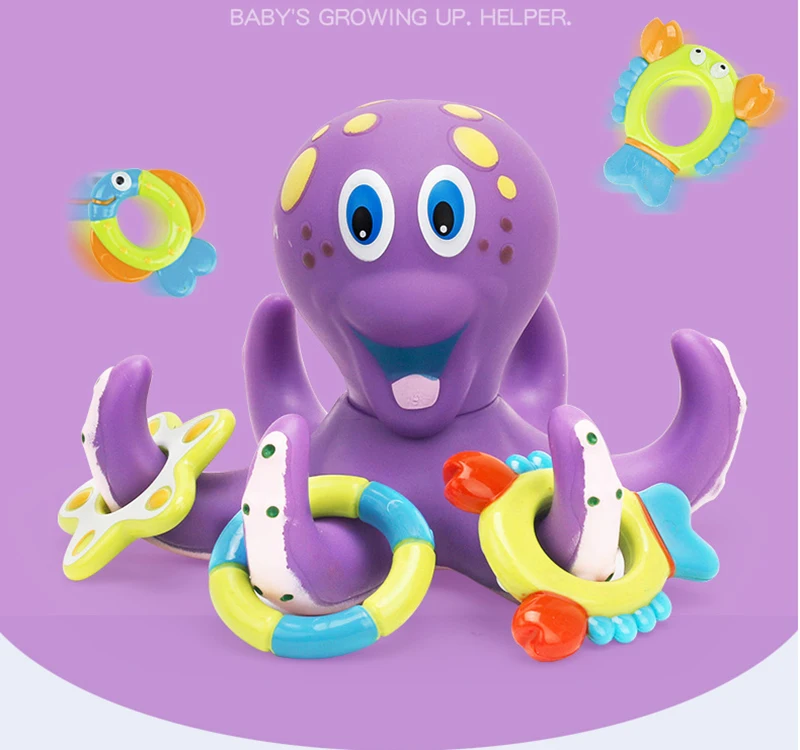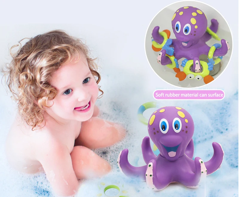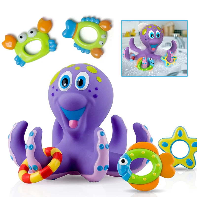 Плавающая игрушка для ванны в виде осьминога для детей, летняя безопасная забавная ванна в форме краба, рыбы, Интерактивная с кольцами, мягкий клей, подарок, аксессуары для бассейна