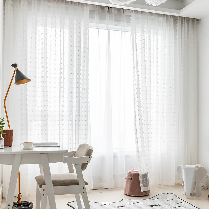 Корейские вышитые занавески для детской комнаты, спальни, гостиной, вышитые, регулируемые белые занавески