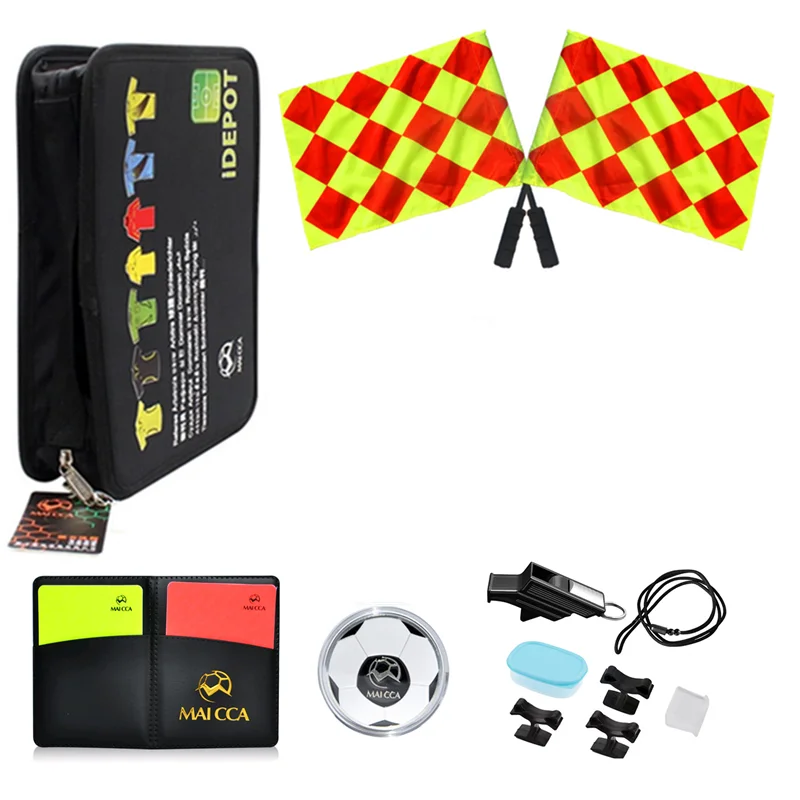 Комплект футбольной судьи MAICCA, судьи с флагом, свисток, красная, желтая карта, барометр, судьи, спортивное игровое оборудование
