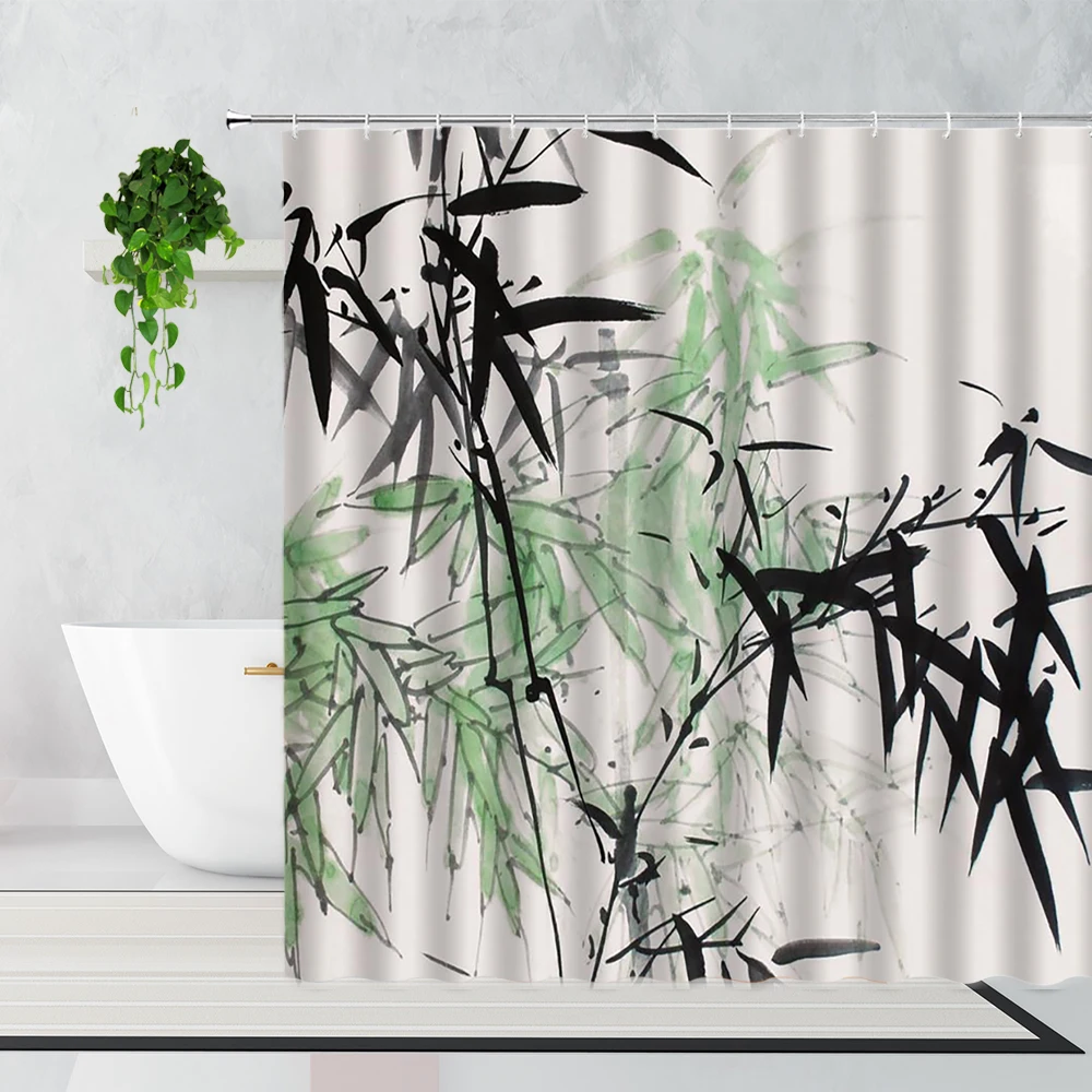 Занавеска для душа в китайском стиле пион зеленый бамбук Карп Горны...
