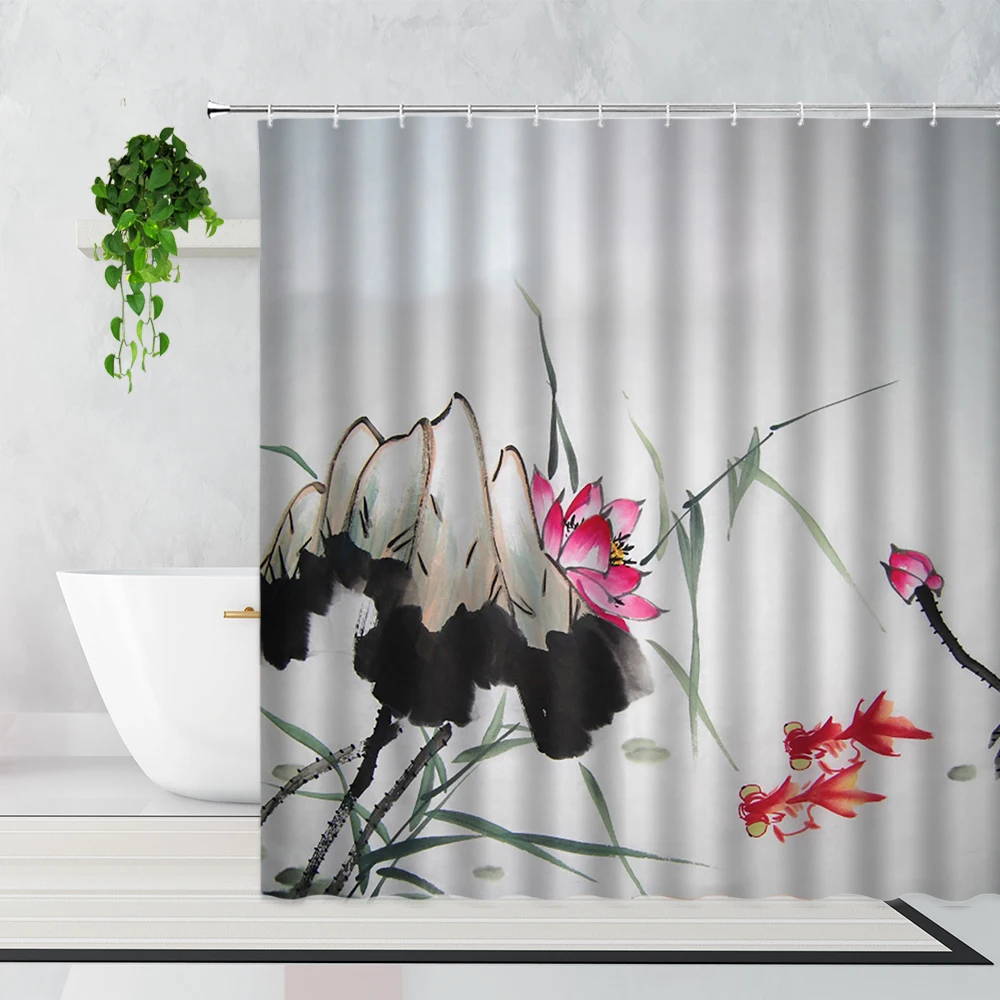 Занавеска для душа в современном китайском стиле, с изображением ры...