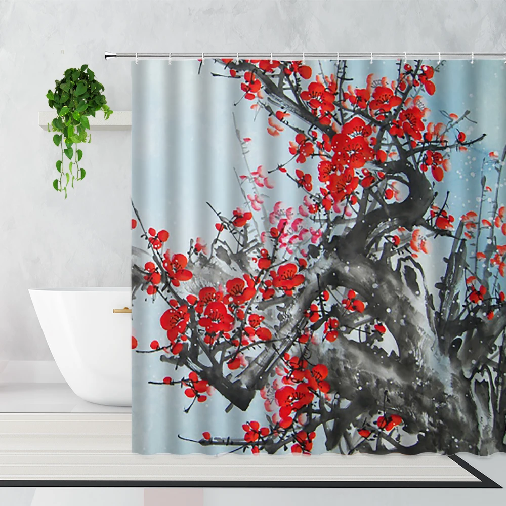 Занавеска для душа в ванную комнату с японскими цветами вишни, Весе...