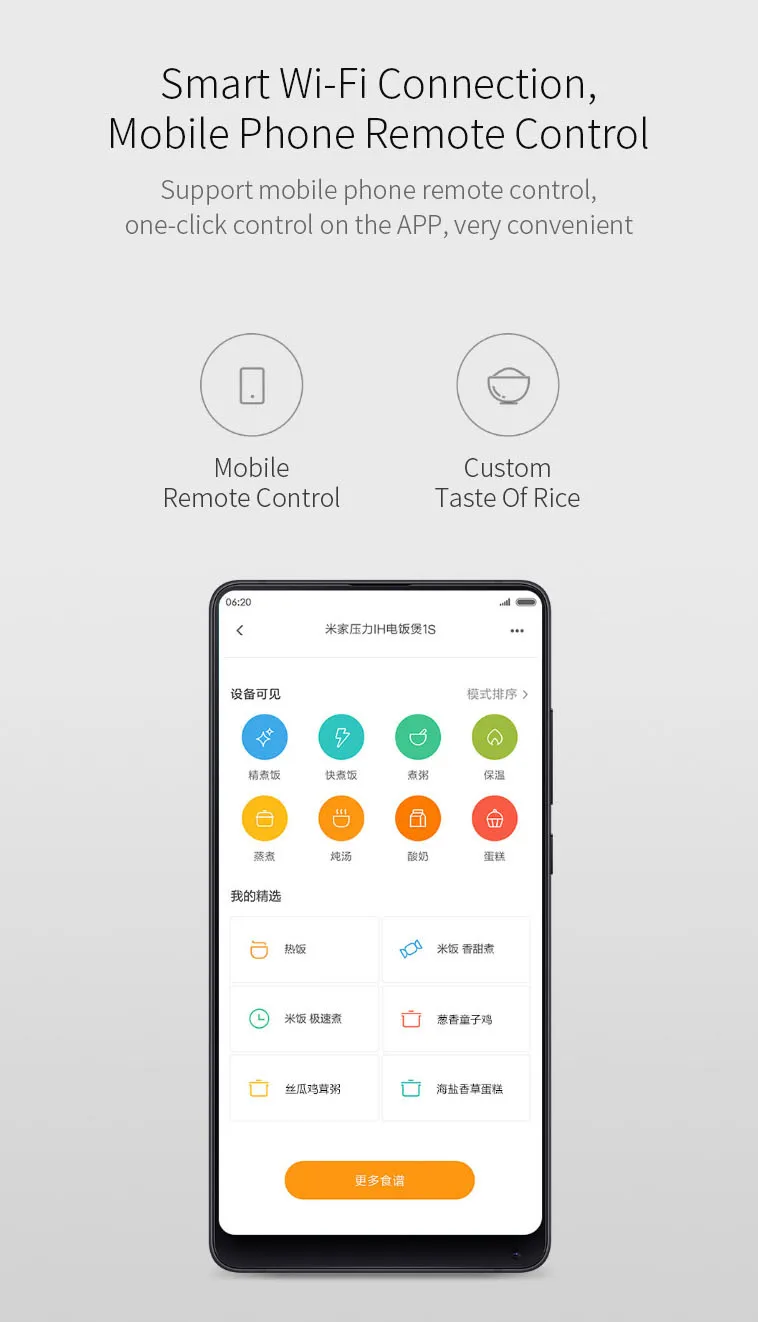 Бренд Mijia Размер изделия 300*251*212 мм Внутренний материал Чугун Цвет Белый Вес 6,5 кг Размер 30x25,1x21,20 см/11,81x9,88x8,35 дюймов Емкость 3л Напряжение 220V / 50Hz Номинальная мощность 1660 Вт Нагревательная модель IH Отопление Фиксированное рабочее давление 20 кПа Беспроводная связь CMIIT ID : 2017DP6053 модуль радиопередатчика Wi-Fi IEEE802.11b/g/n 2,4 ГГцПосылка включает в себя: 1 х рисоварка 1 x рисовая ложка 1 суповая ложка 1 x мерный стаканчик 1 х шнур питания
