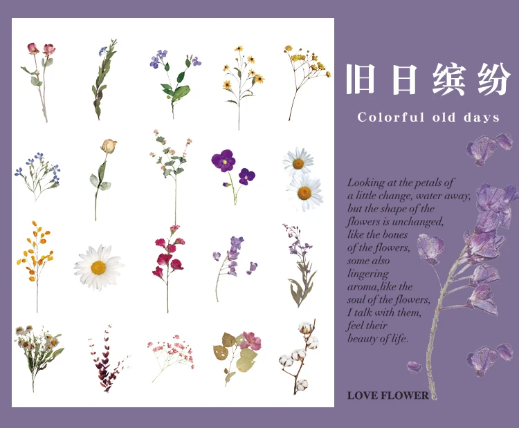 Винтажные Цветы эвкалипт гриб Ирис домашнее животное упаковка наклеек DIY дневник украшение журнала этикетка наклейка альбом Скрапбукинг