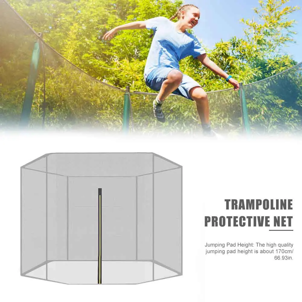 1.Монтажная сетка: безопасная сеть для батута 10 футов с 6 полюсами и батута 15 футов с 12 полюсами является премиум, и это имеет тот факт, что изнутри: молния, снаружи: молния и пружинный крючок.