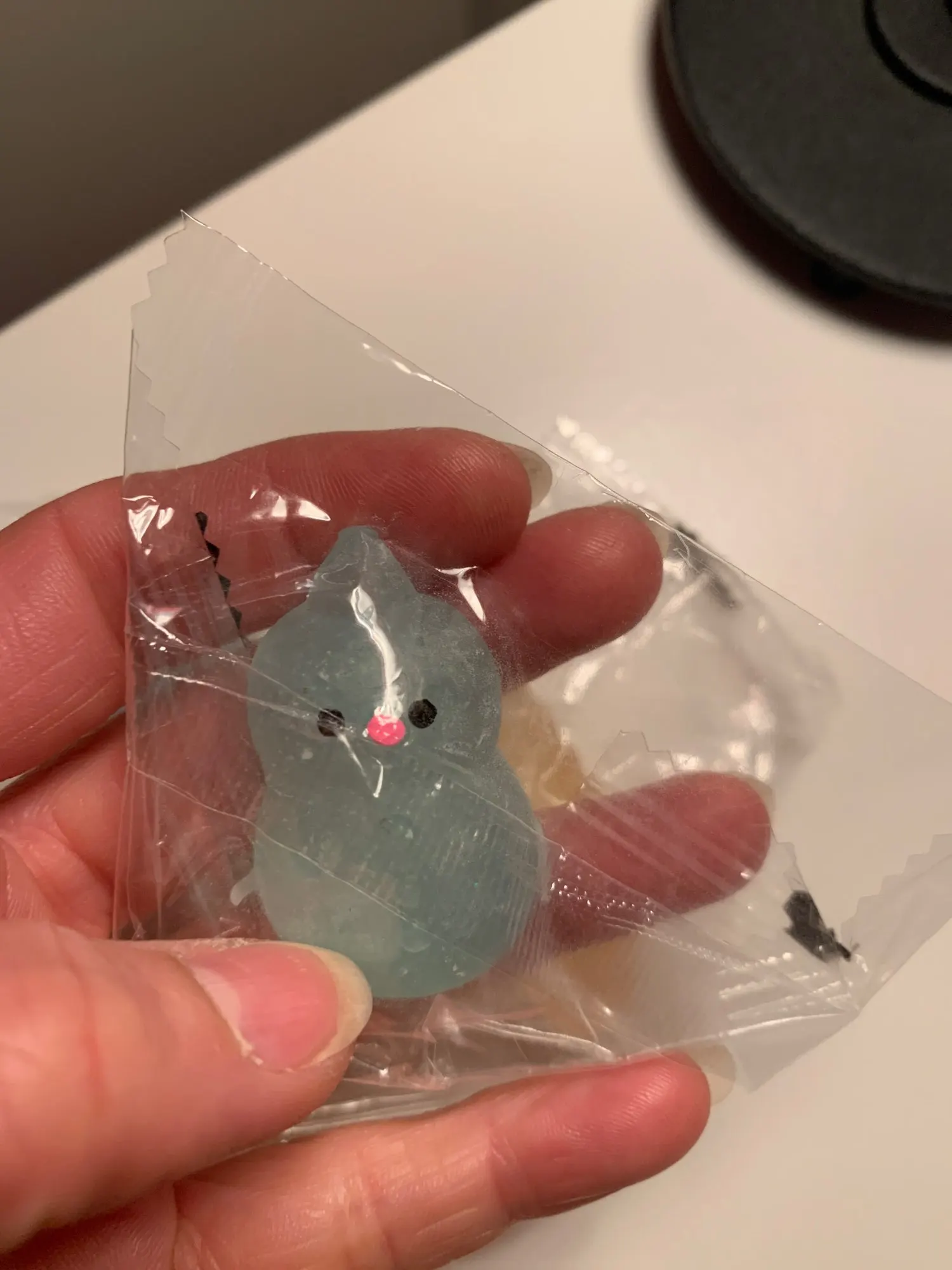 Как вы можете видеть, бедный слон прибыл с изогнутой ножкой... Но остальные хорошие. Некоторые из них были немного сплющены в упаковке, но я думаю, что это следует ожидать. Оставляет слегка липкое вещество на руках после того, как прикоснитесь к ним некоторое время. Цена не слишком плохая. Кроме того, они очень милые и забавные!