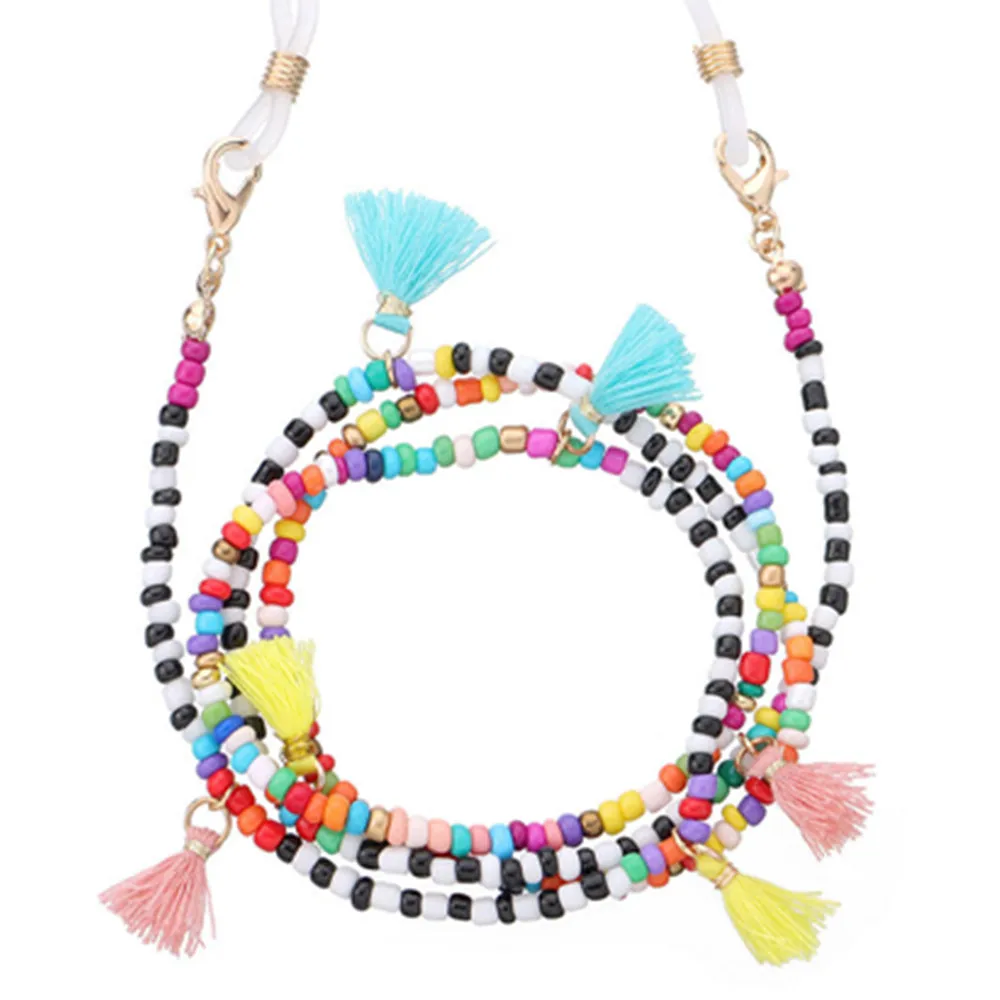 Разноцветная цепочка для очков с бисером, цепочка для очков с защитой от потери, ремешок для маски, цепочка, ожерелье с кисточкой, подвесная цепочка для очков, ежедневный стиль
