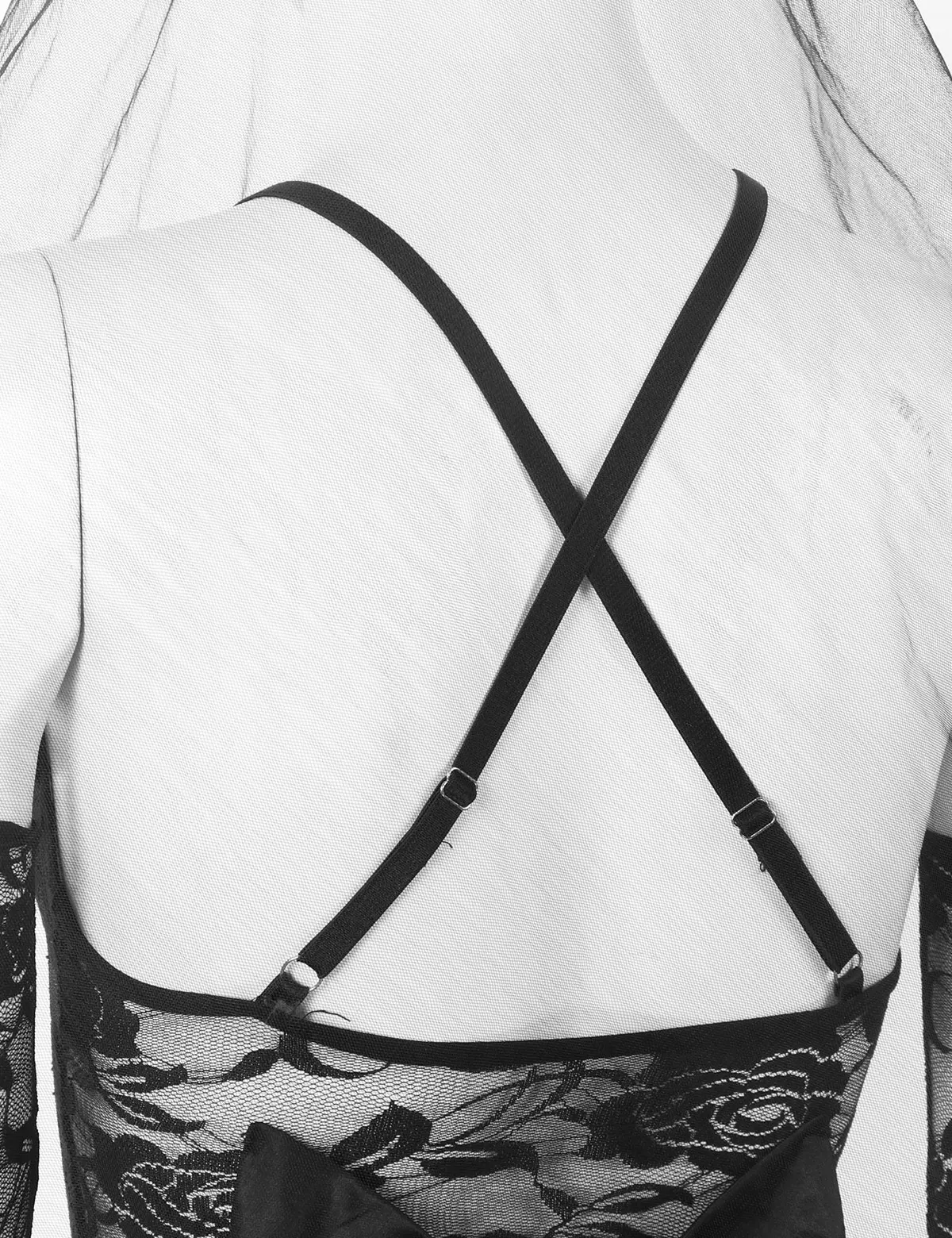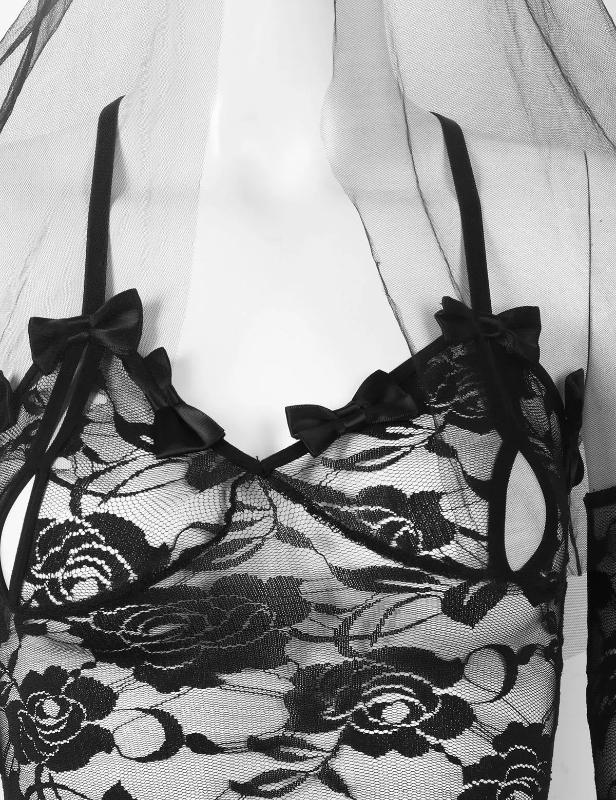 5 шт. женское нижнее белье для невесты, костюм для ролевых игр, мягкая и легкая ткань, просвечивающий дизайн. Регулируемые бретельки-спагетти перекрещиваются сзади. Большой бант сзади. Кружевной лиф с цветочным рисунком и сетчатым подолом. Подходящие стринги и одна пара подвязок для ног, перчатки с петлей для пальцев, головной убор прикреплен с вуалью, удобно носить. Идеальный подарок для женщин, жены и девушки на День святого Валентина, свадьбу или медовый месяц. Пожалуйста, внимательно ознакомьтесь с размером перед оформлением заказа, ручная стирка в холодной воде.