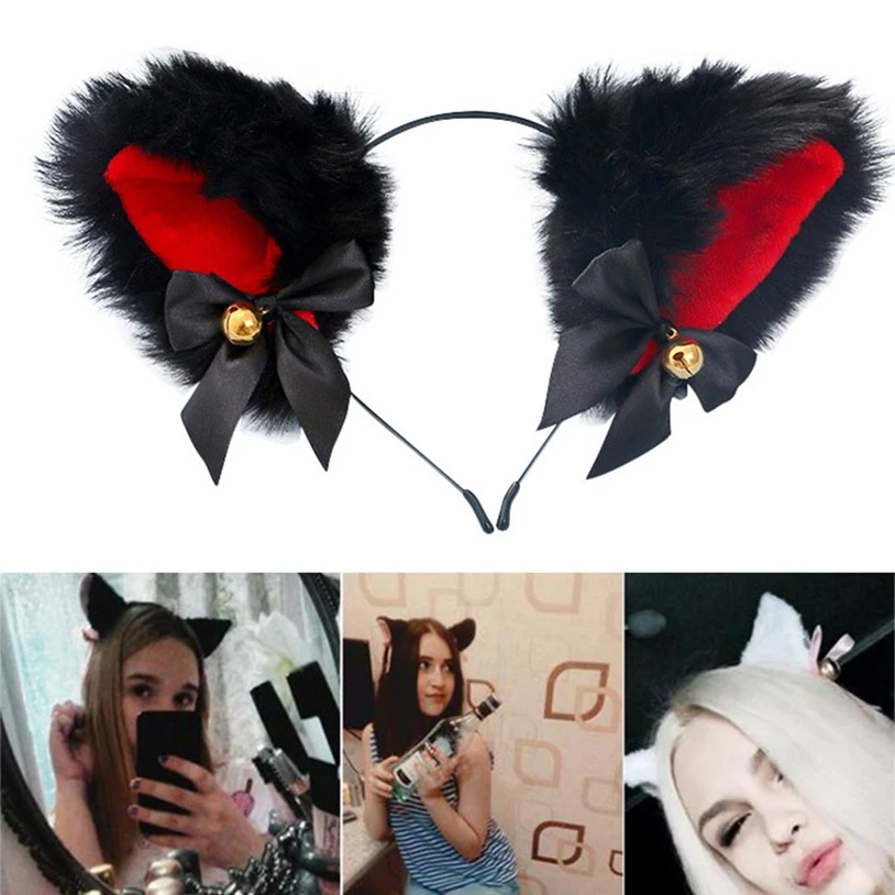 Повязка для волос с животными ободки с кошачьими ушками и колокольчиками на Хэллоуин, маскарадный костюм для косплея, вечевечерние, выступления, головной убор для девочек