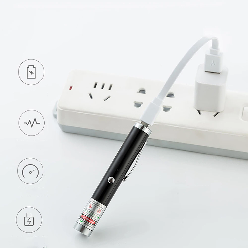 Лазерная указка с USB, 5 мВт, мощный зеленый и красный точечный лазерный измеритель, 530 нм, 650 нм, зеленая лазерная ручка