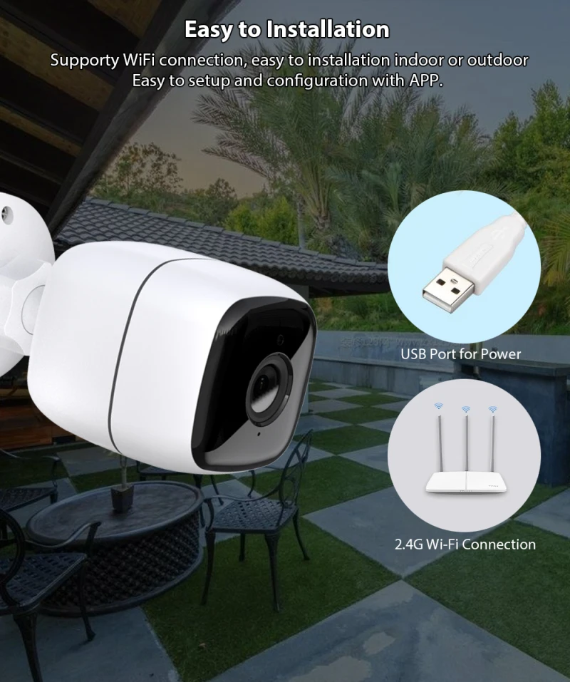 Простое подключение к Wi-Fi, простая установка в помещении или на открытом воздухе, простая настройка и настройка с помощью приложения.