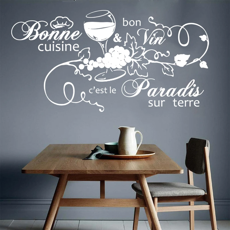 Французский хороший еда на земле виноград Флора Наклейка на стену кухня ресторан винная плита Семья любовь Цитата Наклейка на стену столовая