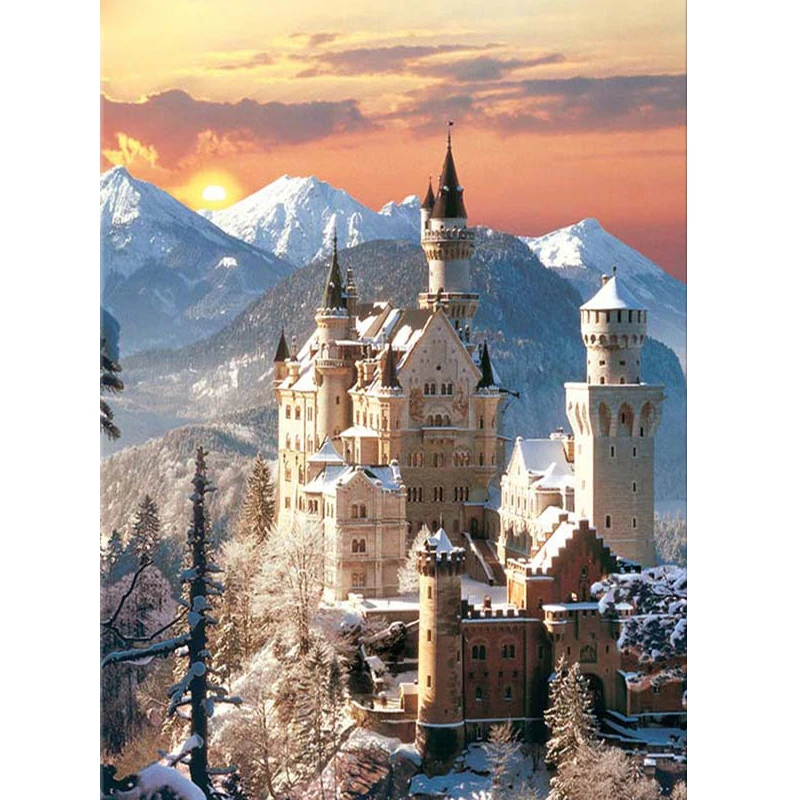Алмазная вышивка сделай сам, немецкие зимние замки Neuschwanstein, полный квадратный круглый набор для алмазной живописи, живописный Стразы