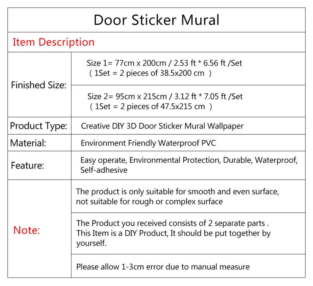 Страна: IL Color: Door JX3330-03 Sticker Size: 95x215cm Доставка: Standard Shipping 12.08.2021