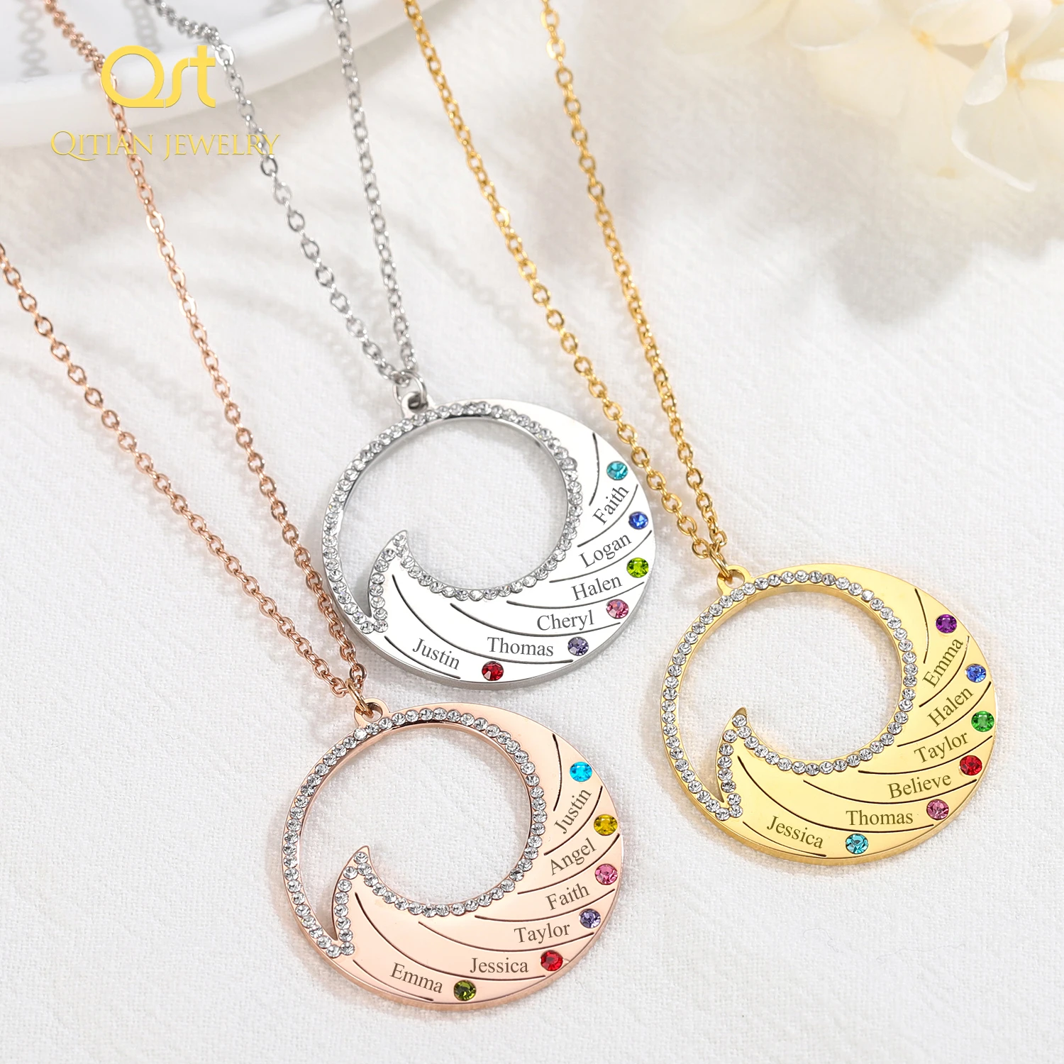 Ожерелье с именем, кулон для женщин, камень, кристалл, волна, нержавеющая сталь, ювелирные изделия, дизайнерские оригинальные