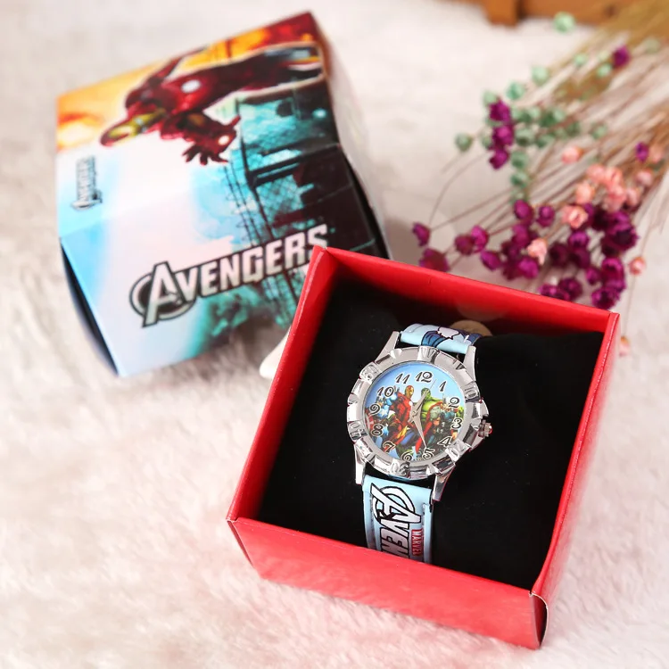 Детские Модные кварцевые часы с кожаным ремешком Мстители, детские ...