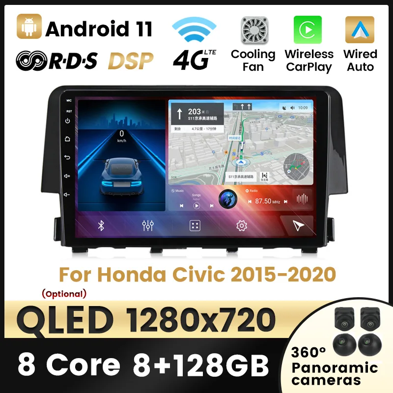 IPS 8 Core Android 11 8 + 128G для Honda Civic 2015-2020 автомобильное радио автомобильный DVD мультимедийный плеер Авто GPS Навигация стерео