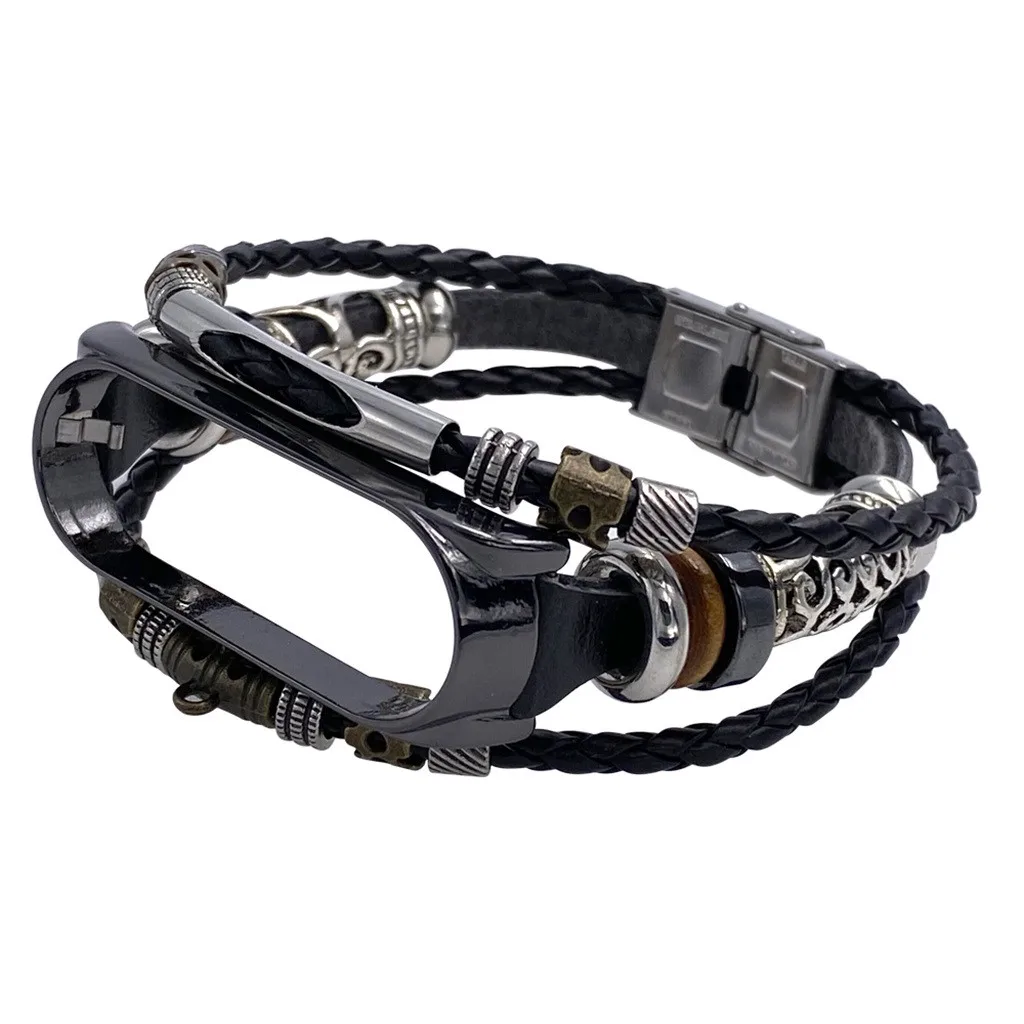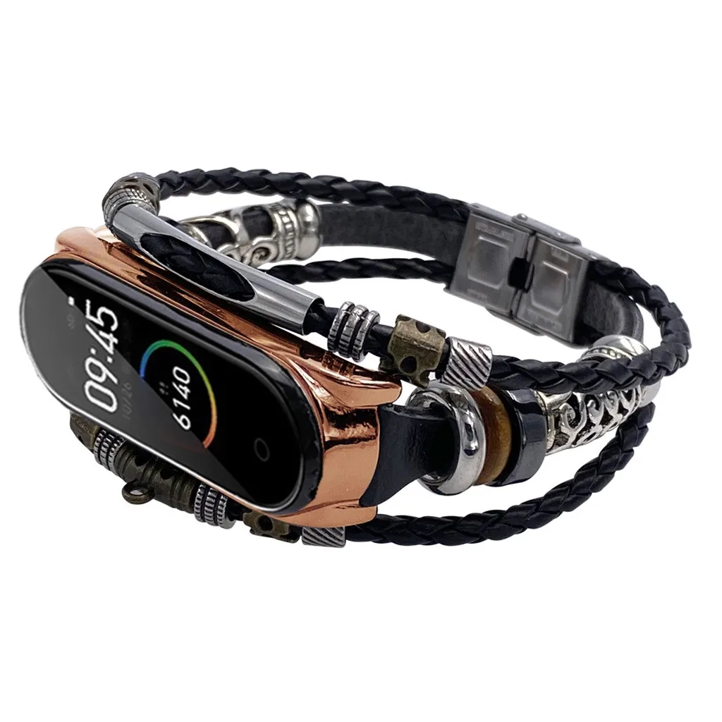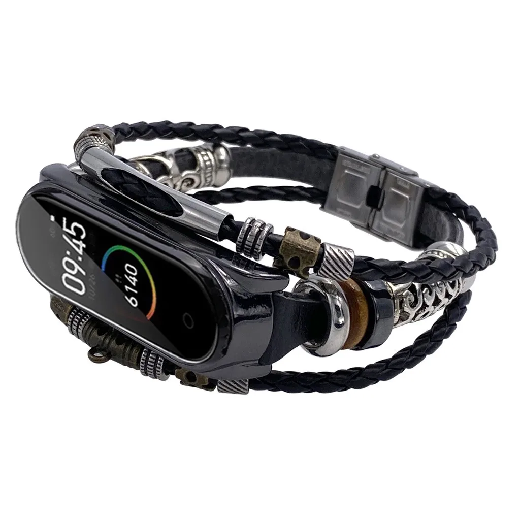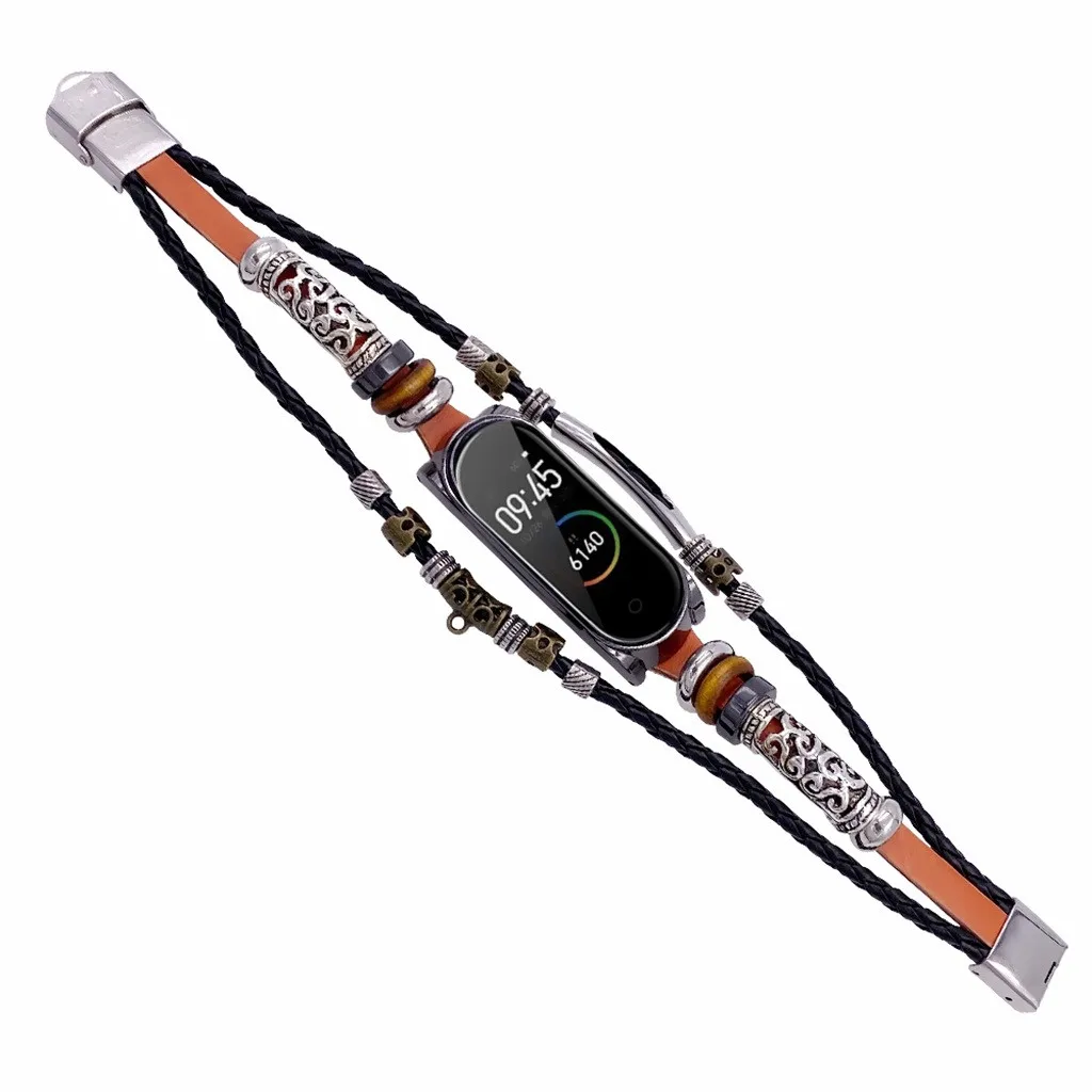 1. X модный кожаный браслет с бусинами для плетения Xiaomi Mi Band 4
