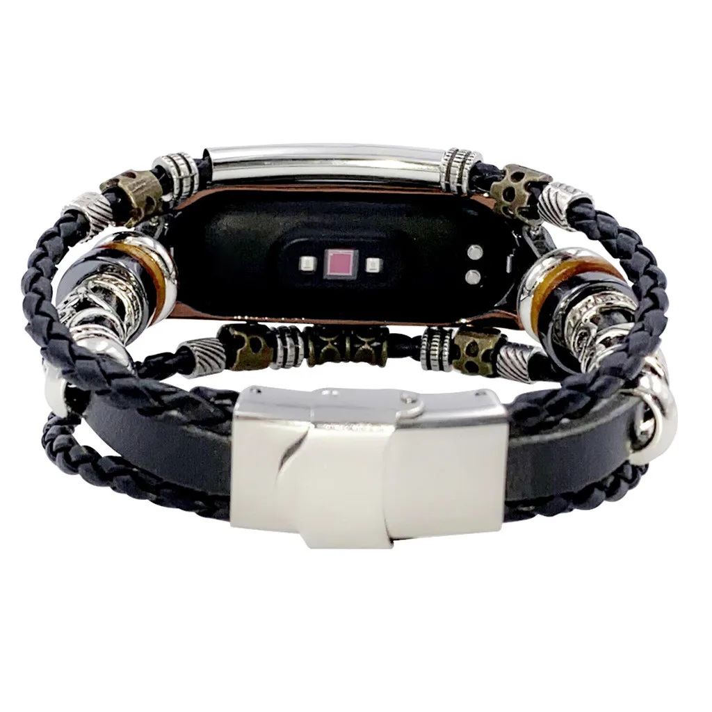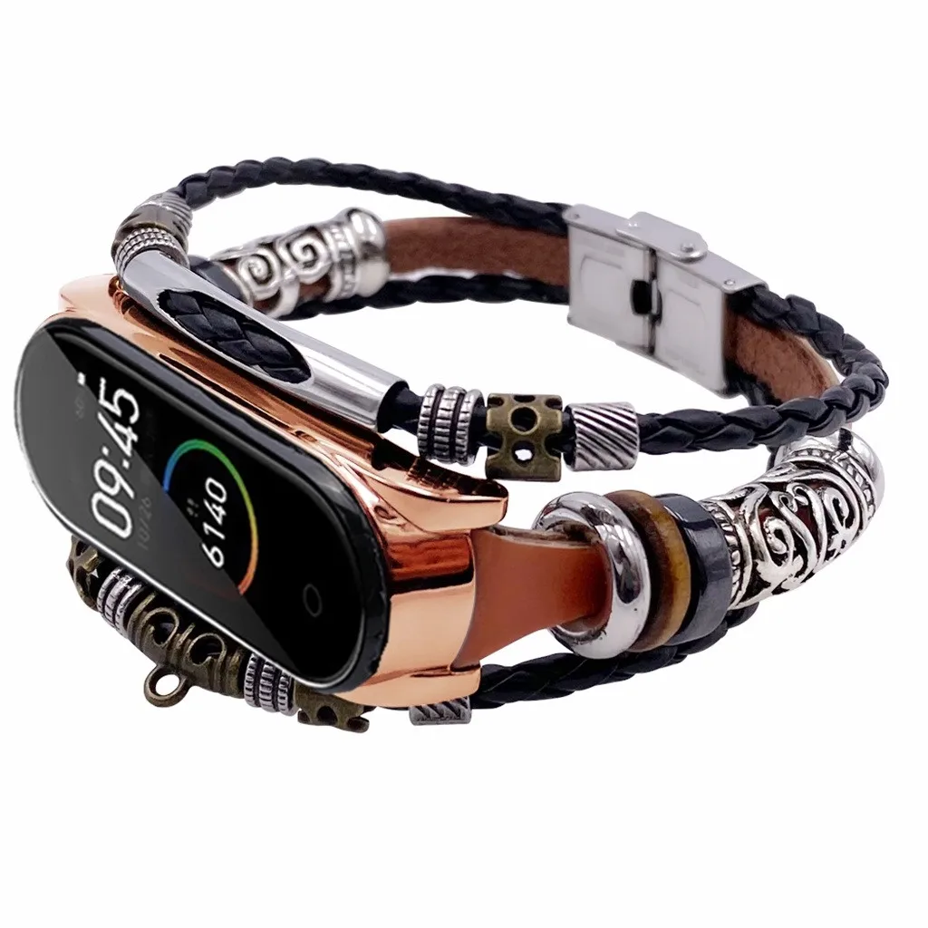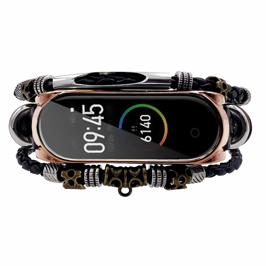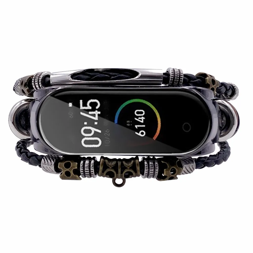 1. X модный кожаный браслет с бусинами для плетения Xiaomi Mi Band 4