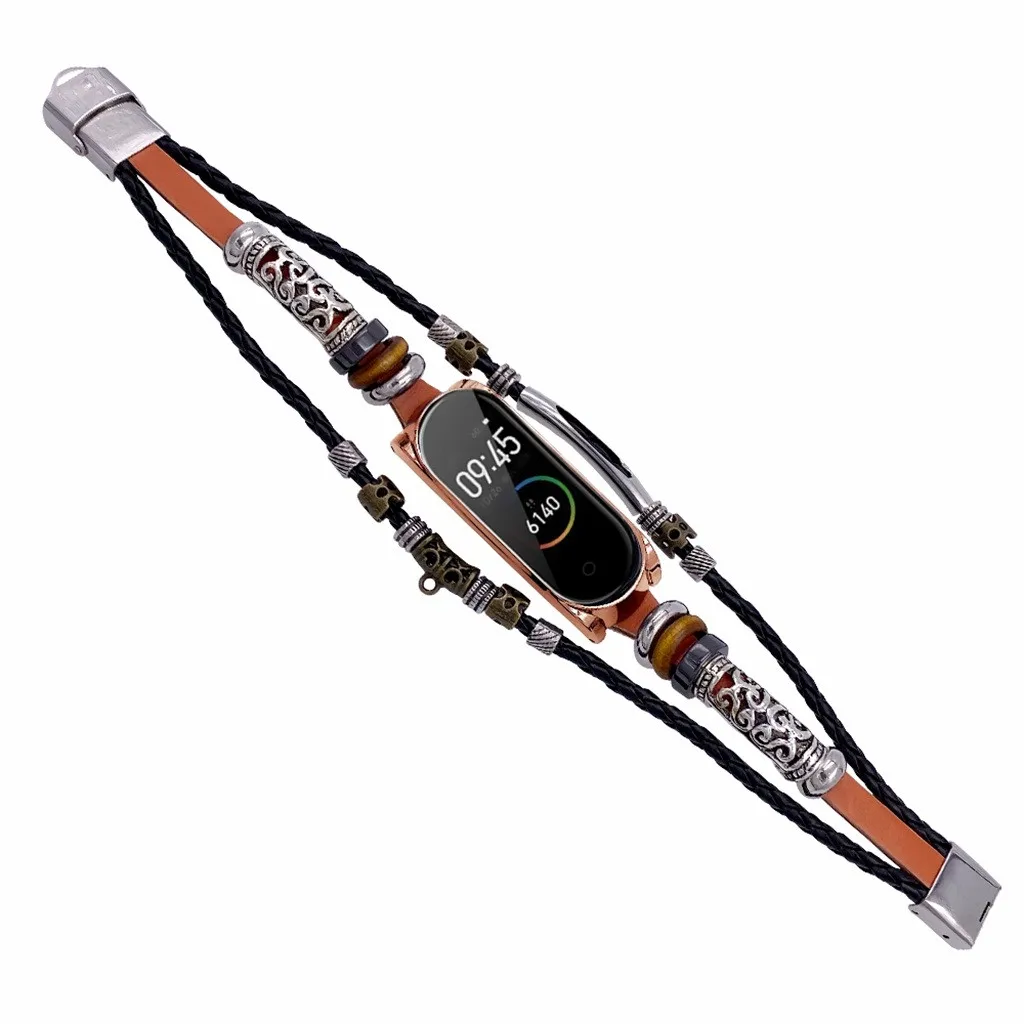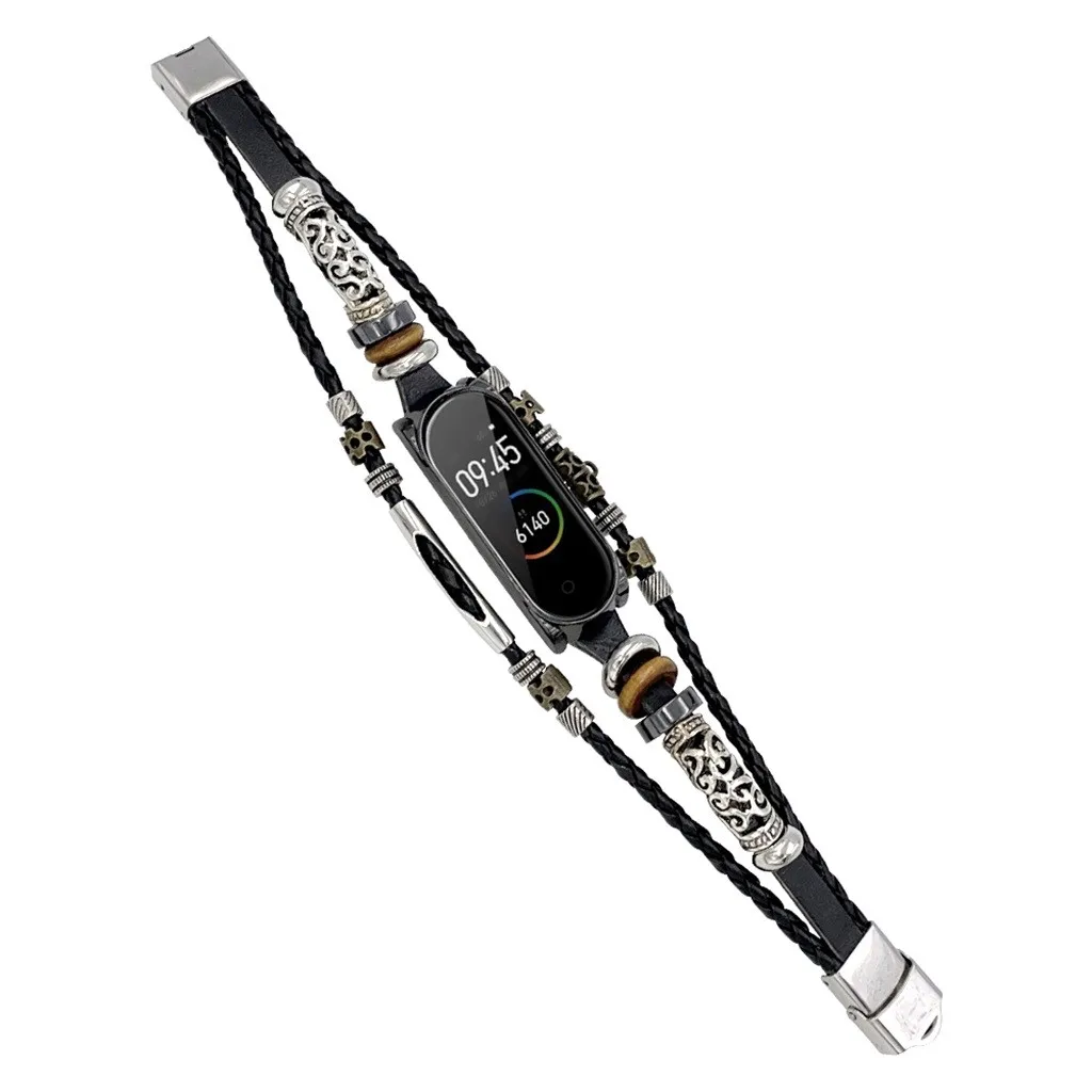 Модный кожаный браслет с бисером Сменный ремешок для часов Xiaomi Mi Band 4
