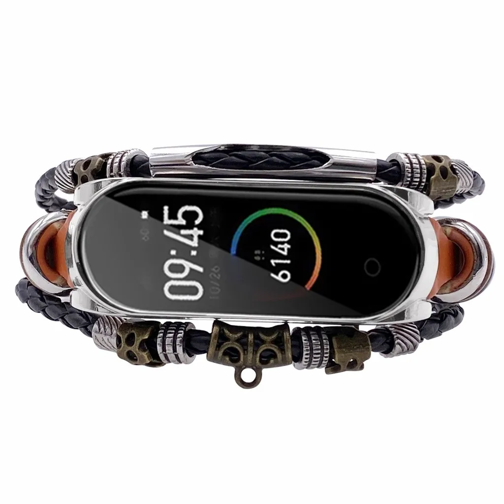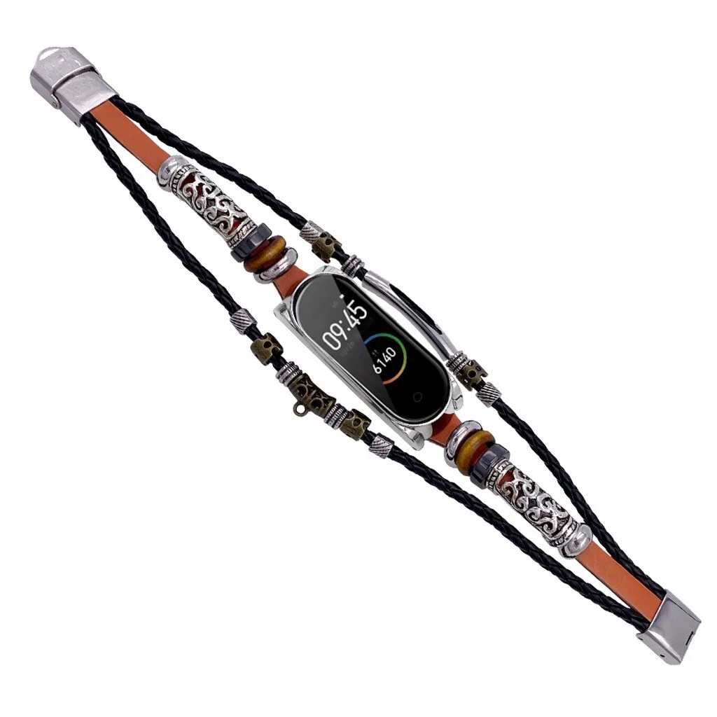 Кожаный браслет с бусинами, ремешок для Xiaomi Mi Band 4, ремешок для часов, плетеные браслеты xiomi xiami xioami miband band4 miband4