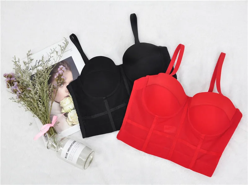 Женский бюстье, красный бюстье с косточками, летний укороченный топ, топ с пуш-ап, вечерние сетный бюстгальтер, вечерний ночной клуб, сетчатый топ размера плюс