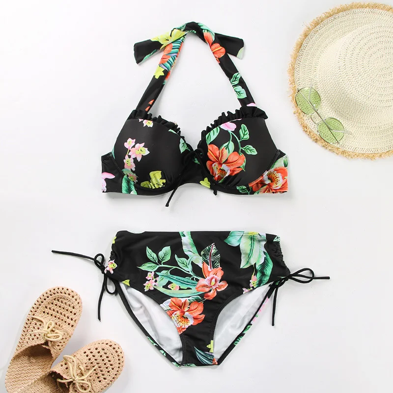 Купальник с рюшами и цветочным принтом, женские бикини, бикини с пу...