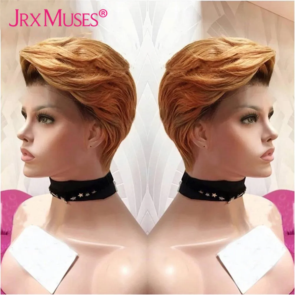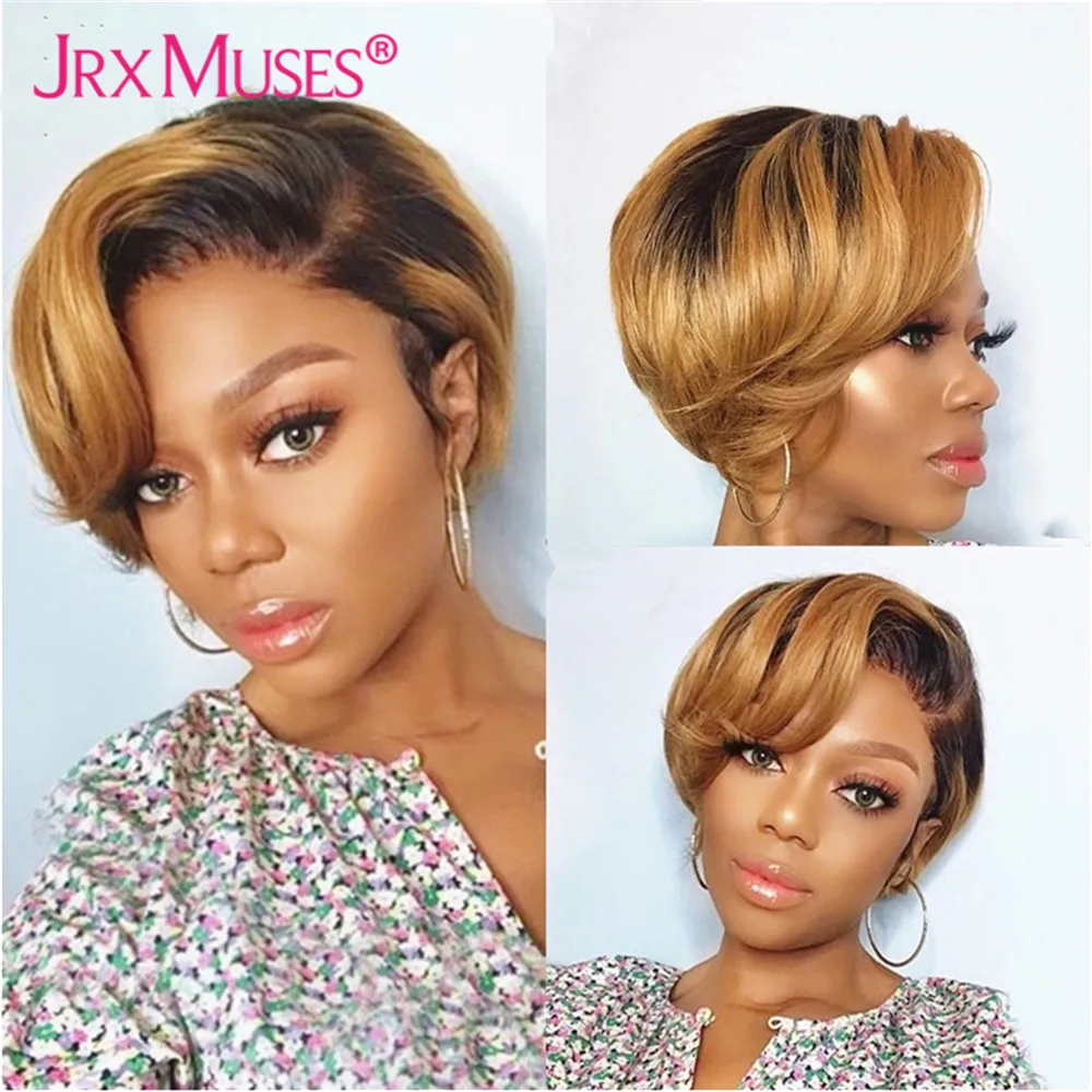 Омбре медовая блондинка короткие волосы вырезанные Фея человеческие волосы парики для женщин 6 дюймов боковые T кружевные части парики Волнистые предварительно выщипанные бразильские неповрежденные волосы