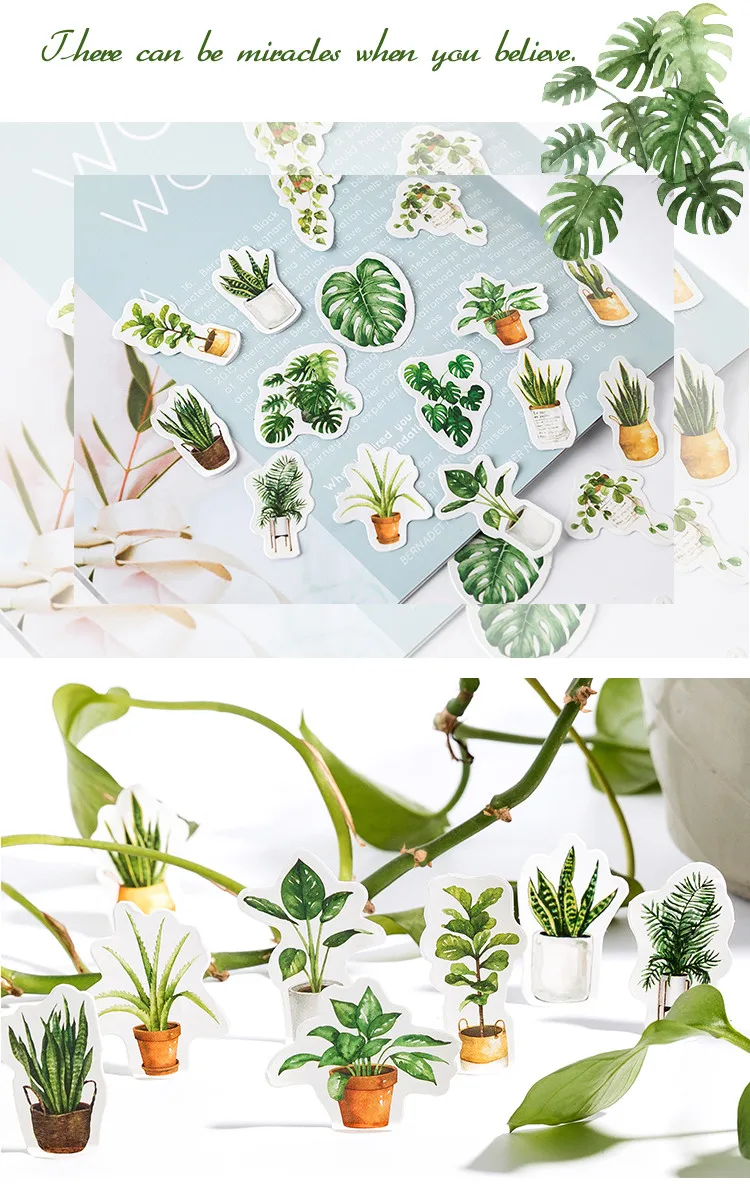 Наклейки декоративные в горшке с зелеными листьями, стикеры для жур...