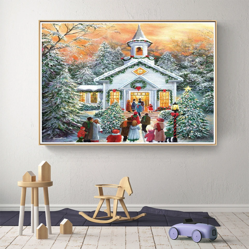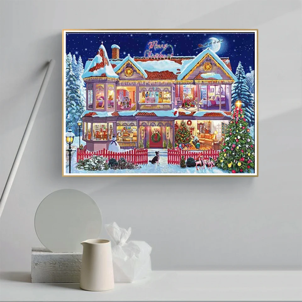 5D алмазная живопись пейзаж зимний дом Стразы искусство картина квадратнаякруглая Алмазная вышивка украшение для дома мозаика подарок