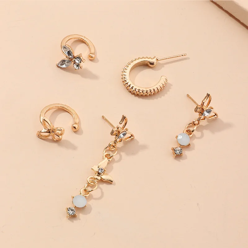 Блестящие стразы бабочка, серьги-гвоздики с Ушная клипса для женщин 2021 Новая мода насекомое Кафф Комплект для девочки вечерние ювелирные изделия