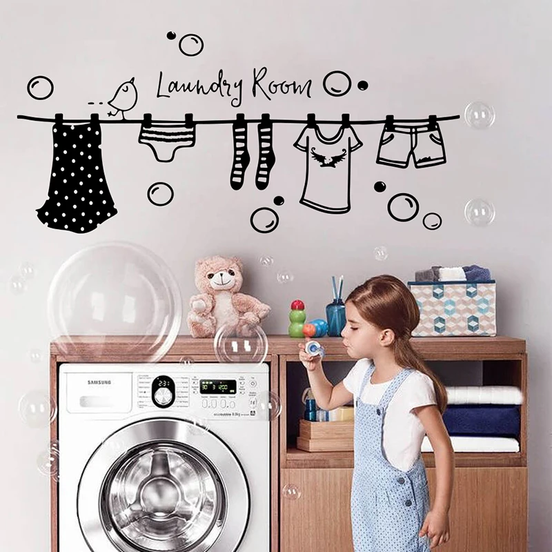 Большая сушильная ткань для стирки, настенная наклейка, стирка для уборной, стирки одежды, птицы, пузырьки, настенная наклейка, стирка для комнаты, виниловый Декор
