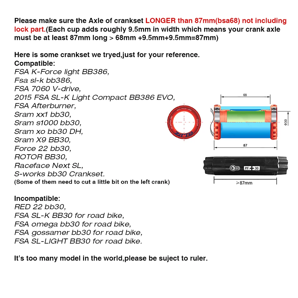 Применимость: для ШАТУНОВ SRAM / FSA / rotor/racefaceφ 30 / 30 мм BB386
