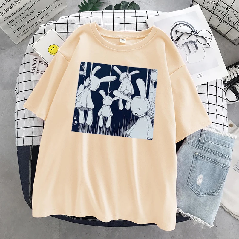 Женская футболка y2k, свободная футболка с круглым вырезом, короткими рукавами, с принтом кролика, готического аниме, размера плюс