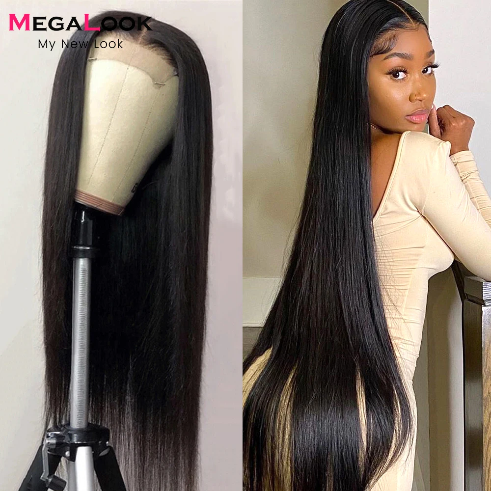 прозрачного кружева закрытие парик 4x4 закрытие парик бразильский прямая шнуровка, парики 180 плотность 30-дюймовый парик шнурка человеческих волос парики из натуральных волос