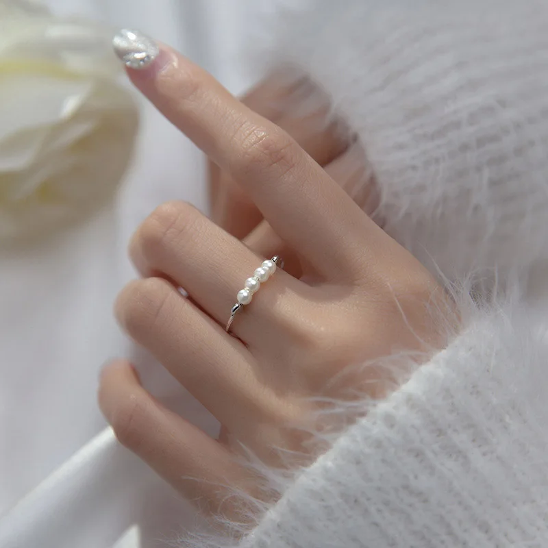 Женское кольцо из серебра 925 пробы, с искусственным жемчугом
