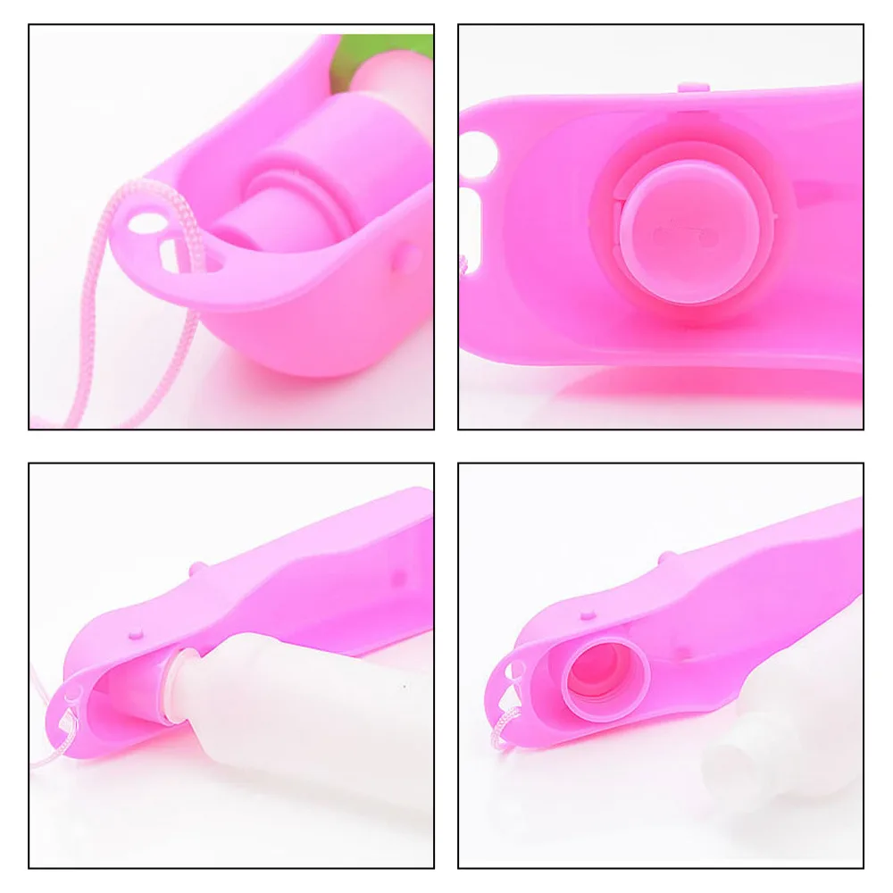 Портативная миска для собаки наполняется водой, когда вы сжимаете бутылку.
