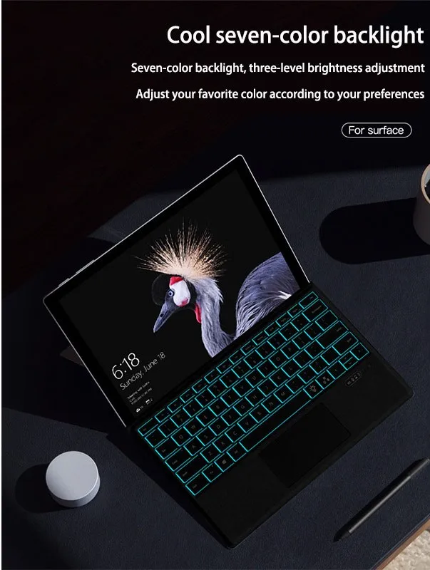 Беспроводная Bluetooth-Клавиатура Teclado, подходит для Microsoft Surface pro7, клавиатура Pro345, цветная подсветка, клавиатура Go2