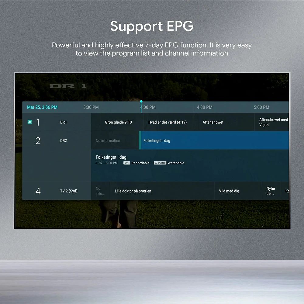 Процессор: четырехъядерный процессор Amlogic S905X4-B ARM Cortex-A55GPU: ARM-G31 MP2 GPUОЗУ: 2 ГбПЗУ: 16 ГбWiFi: Встроенный 2,4G/5G 2T2R WiFi с IEEE 802,11 b/g/n/acBlutooth: BT4.2LAN Ethernet: 10/100MСветодиодный индикатор: Включение питания: синий; Режим ожидания: красныйDVB-T/T2: Поддержка DVB-T/T2/CЯзык: китайский, английский, немецкий, японский, корейский и т. д. 24 языка s