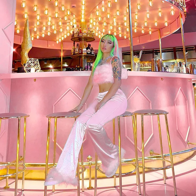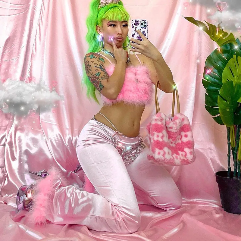 Розовые брюки из искусственного меха пушистые атласные женские расклешенные брюки с высокой талией расклешенные брюки облегающие сексуальные осенние и зимние женские брюки