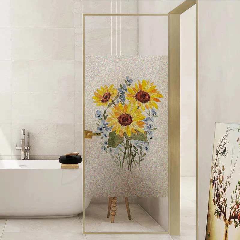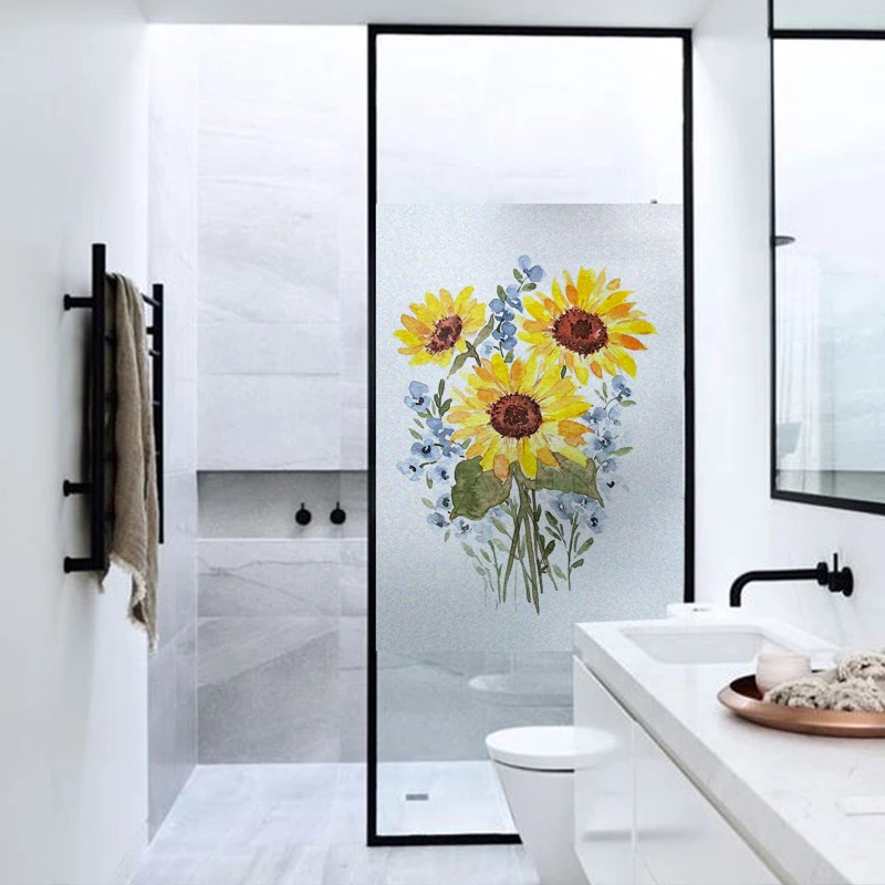 Матовая защитная оконная пленка для конфиденциальности, акварельная витражная пленка с подсолнухом, виниловая оконная наклейка, стеклянная наклейка для гостиной