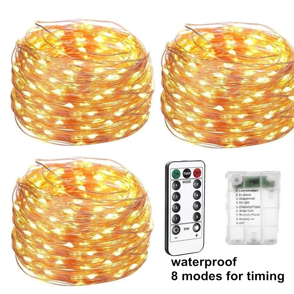Светодиодная гирлянда с питанием от батарейки, уличная лампа-лента с дистанционным управлением, праздничное украшение на Рождество, свадьбу, 5 м, 10 м, 20 м